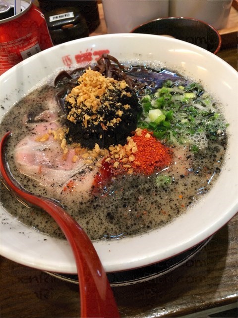黑王來了,很香的蒜味,先尝一口湯,由于我选的是少香油,因此豚湯浓而不你,还有淡淡的墨魚汁香。把黑肉碎球放在汤中泡着,汤更浓。尝一口拉面,我点了超硬的太面,挂汤力高,汤够热,吃下去很爽口。叉烧选了肩肉,脂肪较少,肉味重。溏心蛋有酱油味淡淡滲出,流心的蛋黄存在口中良久。本店非常不錯,应该属于四点之首。但是,不得不承认,豚王的价格偏高,人均110是跑不了的。