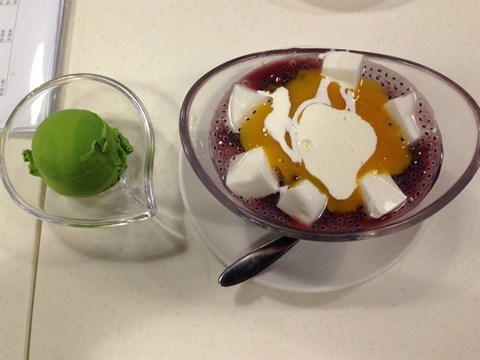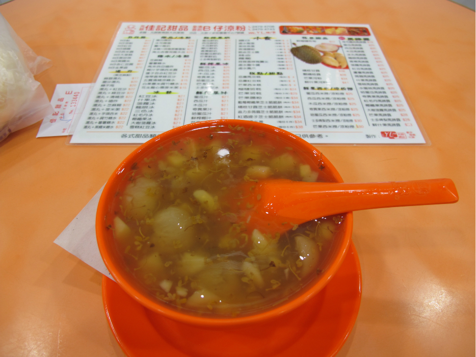 B仔凉粉店的大名其实叫“佳记甜品”,位于元朗居民区内,位置不太好找,是同学带过去的。所谓B仔凉粉,就是一会新鲜水果,再加上一些椰果,底下伴有凉粉和炼奶,有点像国内的水果捞。一份B仔凉粉大概30-50元,分量不同价格不一。即使是最小的一份,也足够三人的分量。除了B仔凉粉,店内的卤水鸡翅也是非常好吃,还有滑溜溜的肠粉。其他的甜品也不错。由于位于居民区,所以价格非常亲民,除了位置不太好找,其他都是极好的。