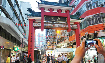 庙街,位于油麻地区,搭乘地铁在油麻地站下车。庙街应该能算得上是香港平民文化的代表地吧。很多香港的影视作品,都在庙街取景,是拍摄黑社会的主要场景之一。如果要体验真正的庙街,就一定要晚上来。每天傍晚,数百个小贩开始在马路上摆卖地摊。入夜之后,地摊上的灯火把整条庙街照得格外通明。在天后庙附近,还可以看到街头粤剧表演,以及流行曲表演等。梅艳芳当年就是在庙街卖唱的时候被挖掘的。庙街的大排档夜宵,夜市风味十足的,尤其推荐港式煲仔饭。因为地道色彩浓厚,价格平民,所以庙街也被称为“平民夜总会”。