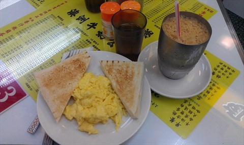 澳洲牛奶公司,很老字号的一家茶餐厅。来这里一定要吃快餐炒滑蛋和冻奶茶。炒滑蛋可以加入牛奶,即使是这样炒出来的蛋也是滑滑的。把滑蛋夹在厚多士里面食用,是非常地道的香港吃法,口感不错。冻奶茶就是一如既往的好,特别喜欢一位胖叔叔调的奶茶,茶味好浓,奶又香滑,很棒。另外, 蛋白炖奶也是一个非常不错的选择,但是比较甜。上菜速度非常快,地道的港式服务,服务员会和你聊天调侃,很棒的体验。