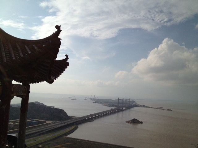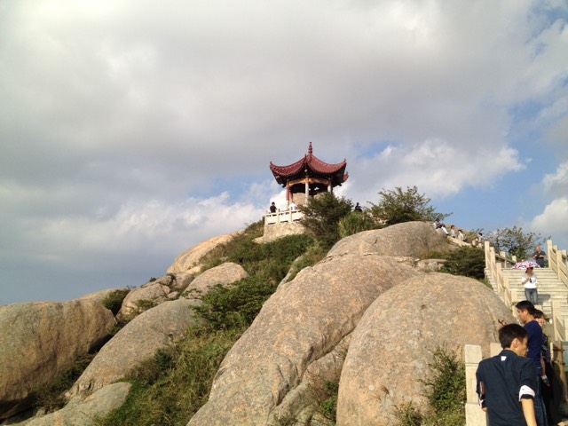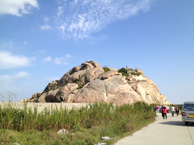 从景区大门到观景平台一号沿途可以看到“海阔天空”、“石龙”等题词。巨石有的像龟、有的像龙、有的像观音菩萨。登上峰顶,“洋山深水港”五个金色的大字镌刻在巨石上,东海大桥似一条望不到头的长龙在海面看着我们,港区的红色大吊车像一排忠实的卫兵屹立在码头边,而浩瀚的大海及海上的岛屿更是使你浮想联翩。有机会应该来此看看。