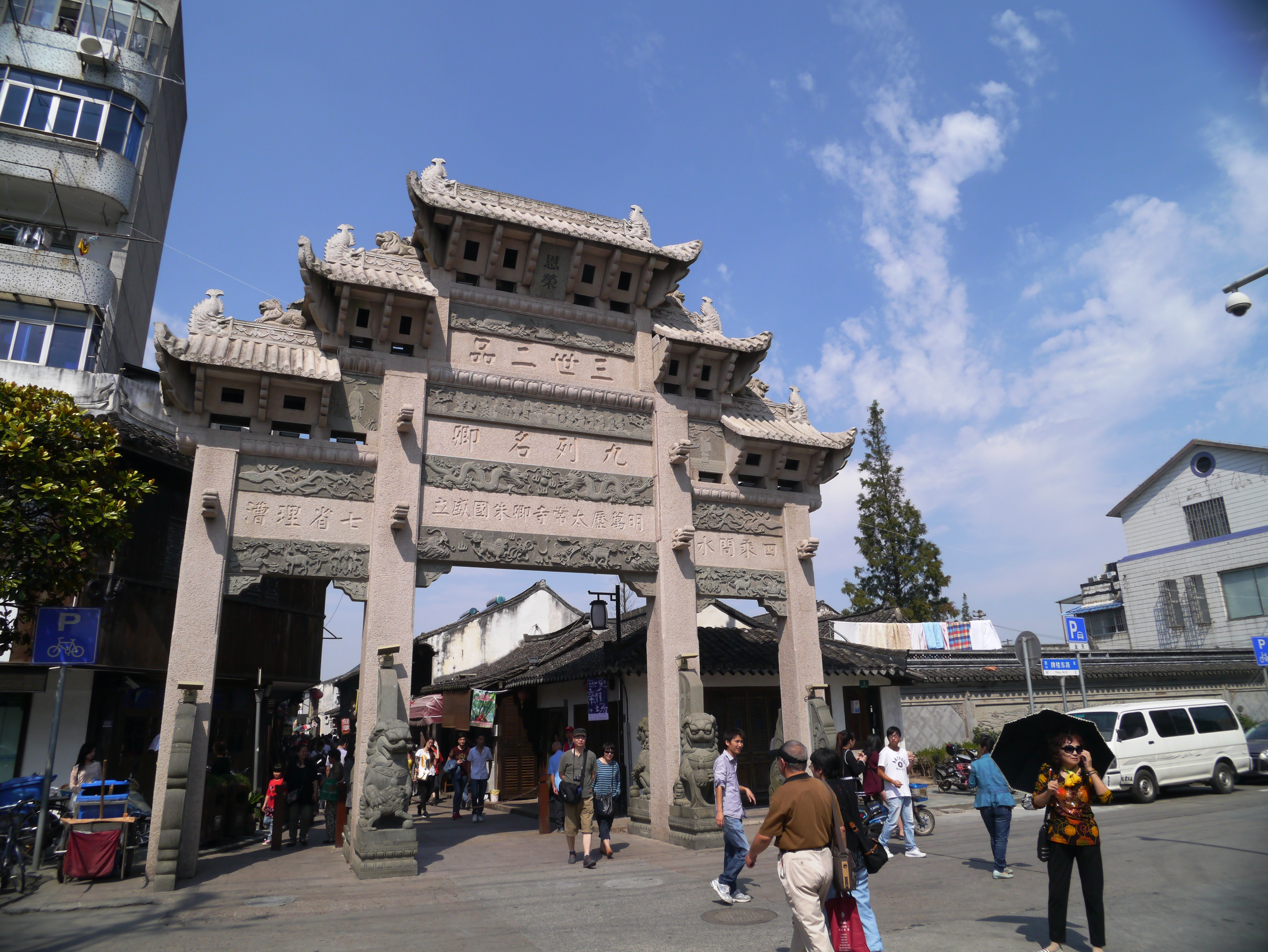 新场古镇得名已有八百多年历史,从浦东龙阳路转地铁16号线可以到达,自驾约30多公里,很方便,不要门票。从三世二品牌坊开始,沿着新场大街约1.5公里的二边有新场历史文化陈列馆、第一茶楼、100多幢历史建筑、古民宅。大街中间有一条小河穿行而过,石拱桥二边最热闹,电影《色戒》中,汤唯和王力宏在第一茶楼里面、以及汤唯走在桥上的场景就是这里取的景。桥边还有一家书场提供免费的说书。到这里不要错过吃,臭豆腐、塌饼、下沙烧卖、汤圆、馄饨等。