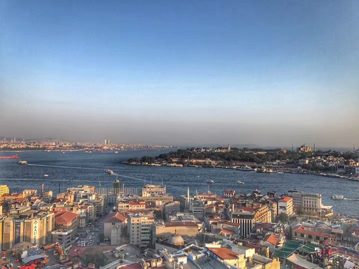 到土耳其的第一个景点,近黄昏的时候登塔,湛蓝的海水和欧亚两周景色跃入眼帘,沁人心脾。待夕阳西下,许多情侣在柔光笼罩下拥吻,感觉时间都静止了。