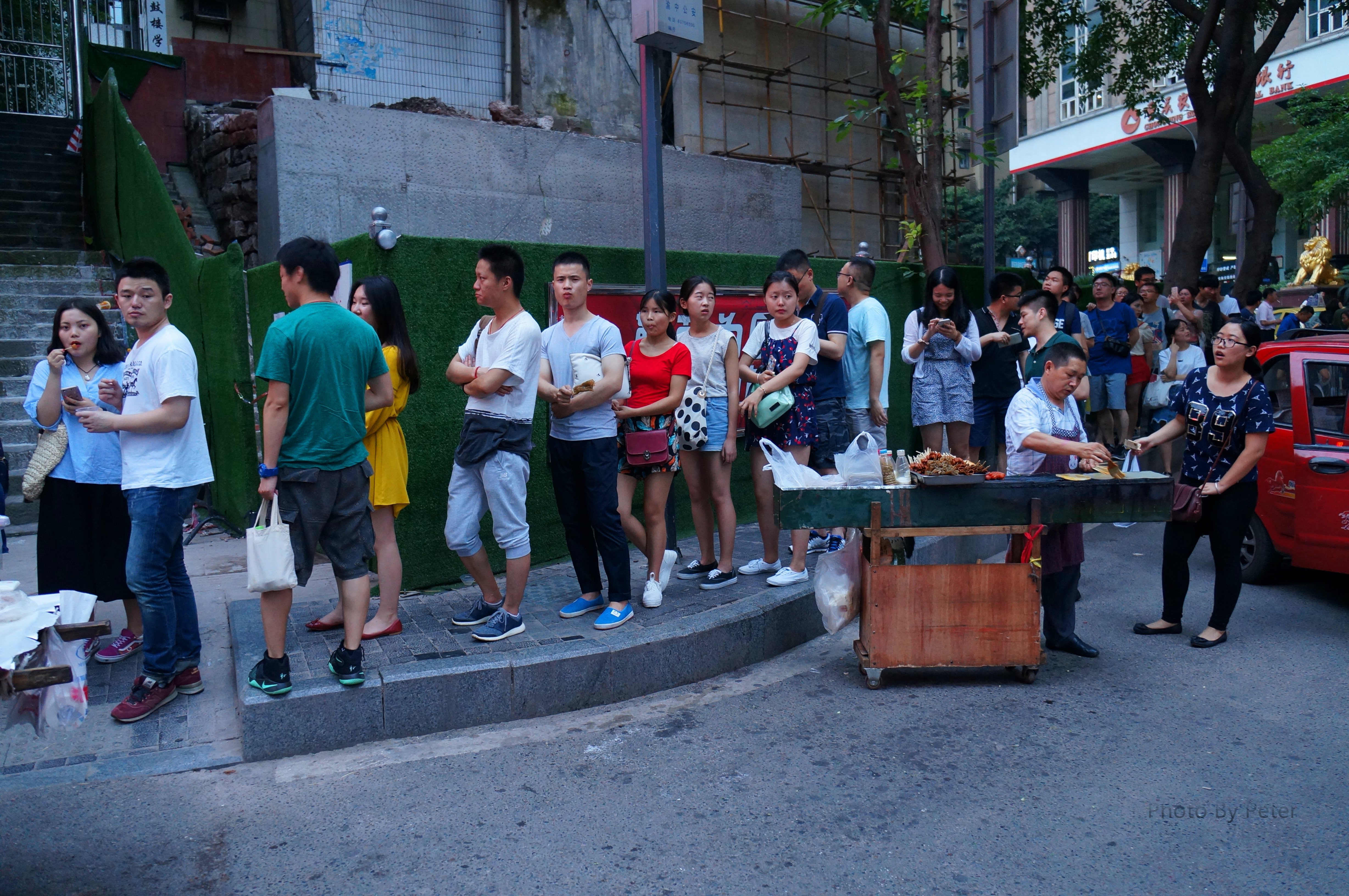 在走到长江索道的时候,我们又被眼前的一幕震惊了,排队已经排到了外面,正当我们犹豫是不是要先去吃好晚饭再来的时候发现队伍行进的速度倒还是挺快的,于是我们就开始排队了。