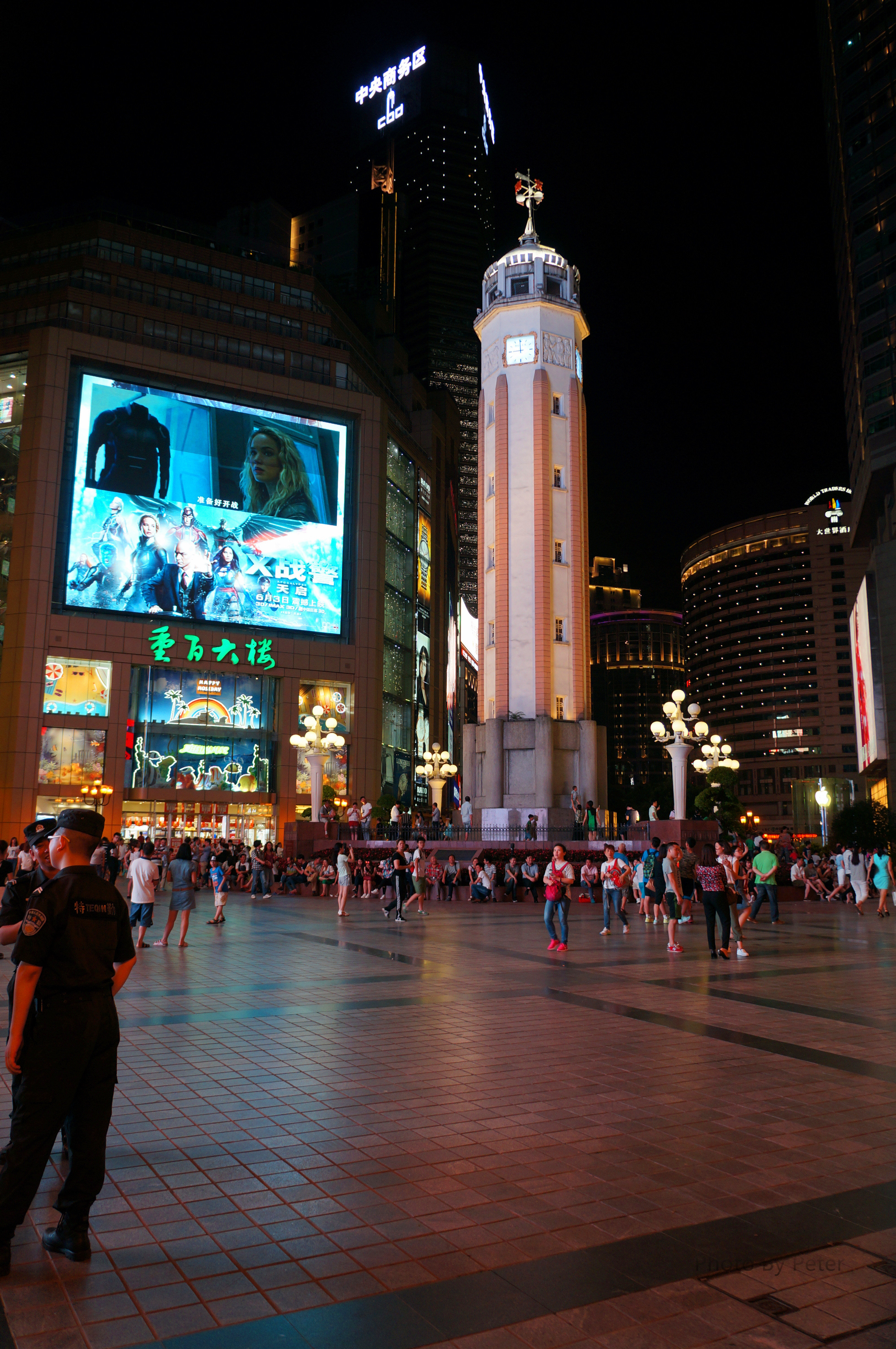 解放碑有点类似于上海的南京路步行街,也是一条步行街,晚上很热闹,人特别多。