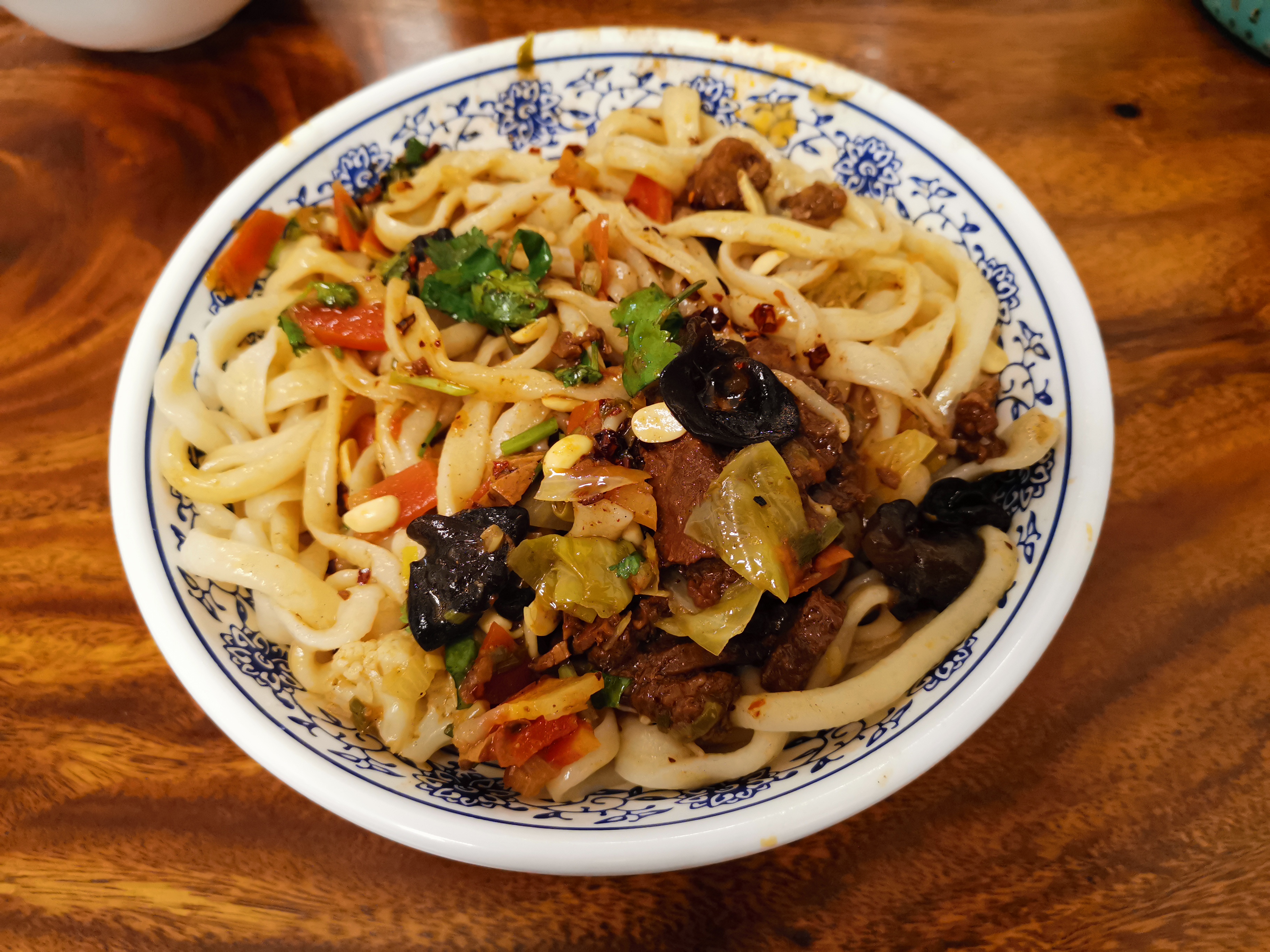 位于案板街吉庆巷。面的份量足足的,可再加菜、牛肉、面。臊子比较辣,可招呼厨房少放辣椒,不过高峰的时候店里的人恨不得一个掰成两半用,不一定顾得过来。但离了辣椒也不行,我点过一份不放辣的,远远没有放辣子的好吃。估计他家辣酱有密方。