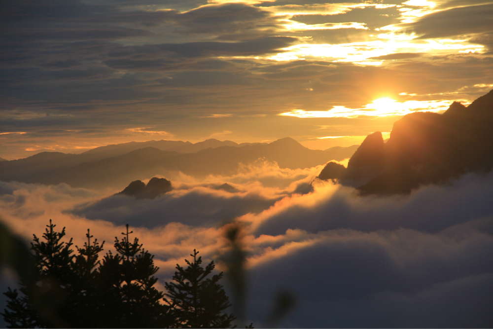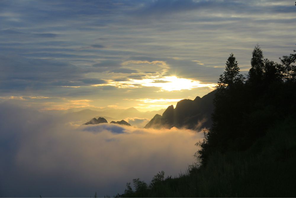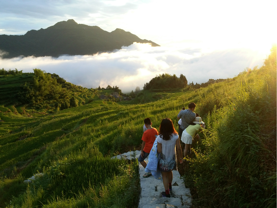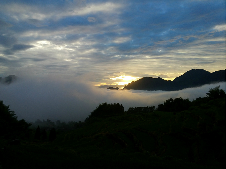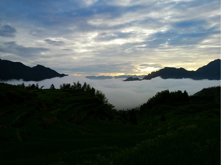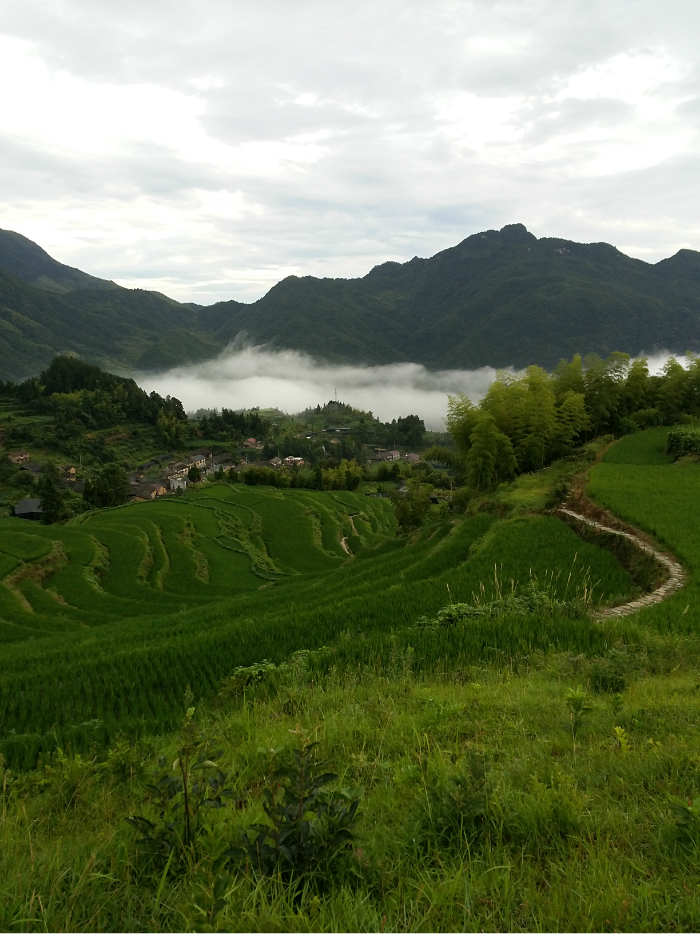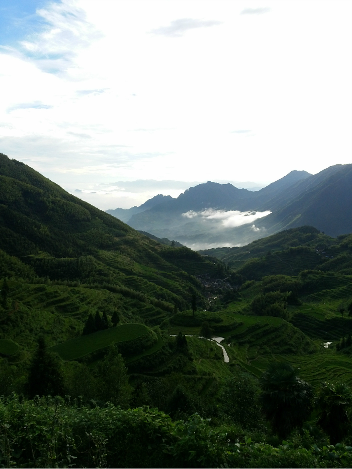 “层层叠叠上远山 蜿蜒逶迤绕云间” —