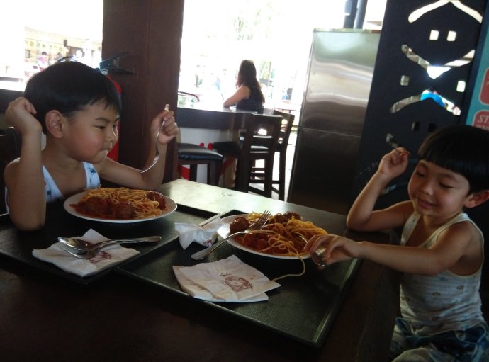 在里面解决午餐。没想到种类很多,价格不贵,味道也不错。在这里,还可以和红毛猩猩一起进餐哦。不过我们吃饭的时候没看到。