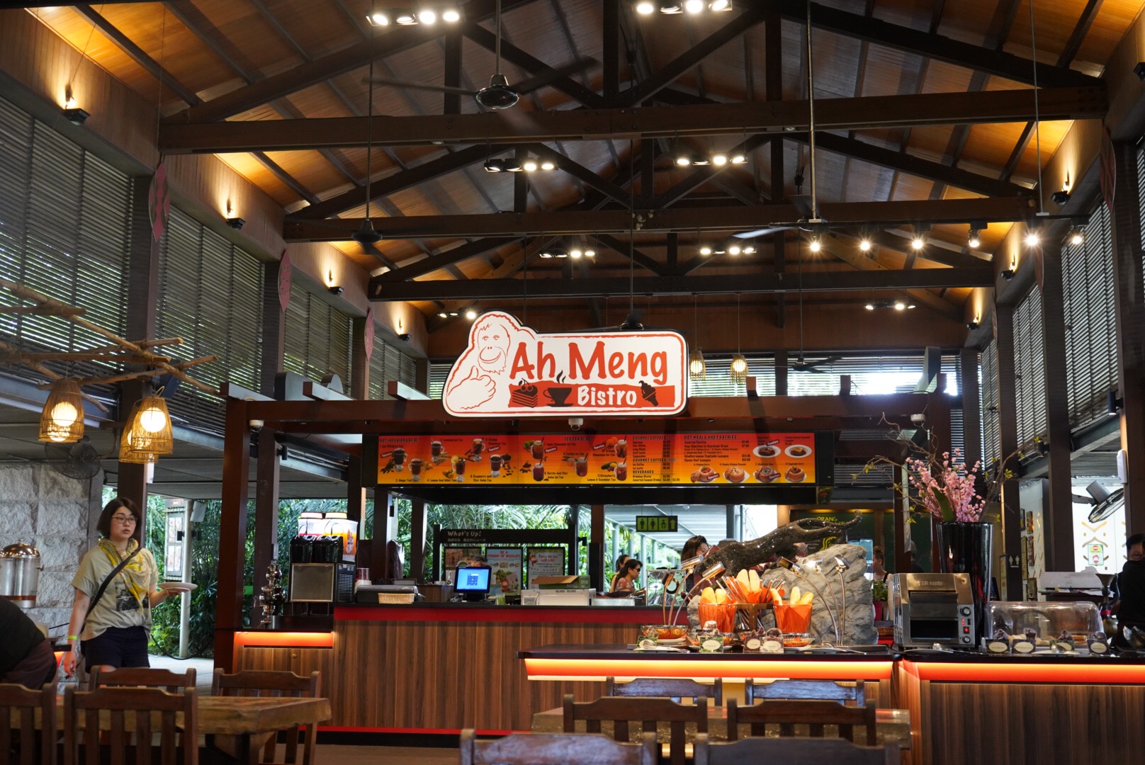 已逝世的红毛猩猩阿明一直以来便是新加坡动物园的招牌明星,而这间餐厅便是展现人们对于阿明的敬意。餐厅内的墙上挂着许多阿明的照片,除了迎接大家进入餐厅之外,还同时唤起对阿明的记忆。但是餐厅没有多少好的选择,吃的意大利面味道一般,填饱肚子而已。