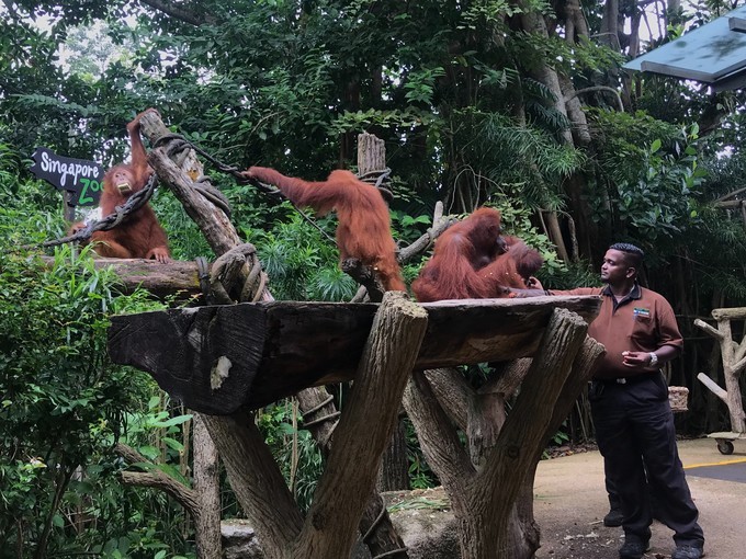 今天的重头戏就是与魅力超凡的红毛猩猩共进早餐,这样的机会不是每天都有,而 新加坡 动物园是世界上唯一提供此难得机会的动物园。吉祥物红毛猩猩阿明是动物园的明星,现在已经去世,它是 新加坡 孩子们的记忆。