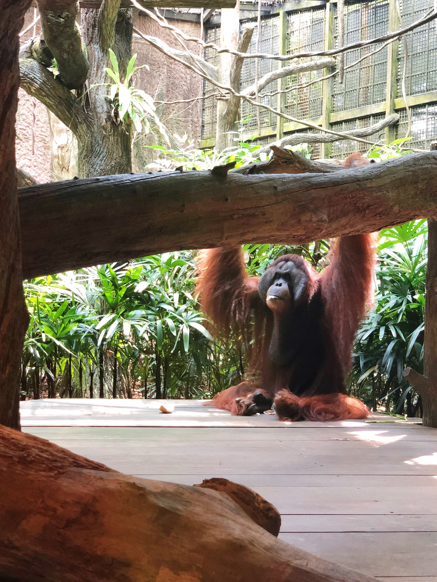 9点半,红毛猩猩会从高高的树枝上晃荡下来,集体亮相餐厅,在旁边的小木台上进食~游客可以排队靠近拍照,与大多数景区一样,有工作人员会拿专业相机帮拍,如果要照片的话,另外付费购买,当然没有强制,他们也会拿你的照相设备为你免费拍照。