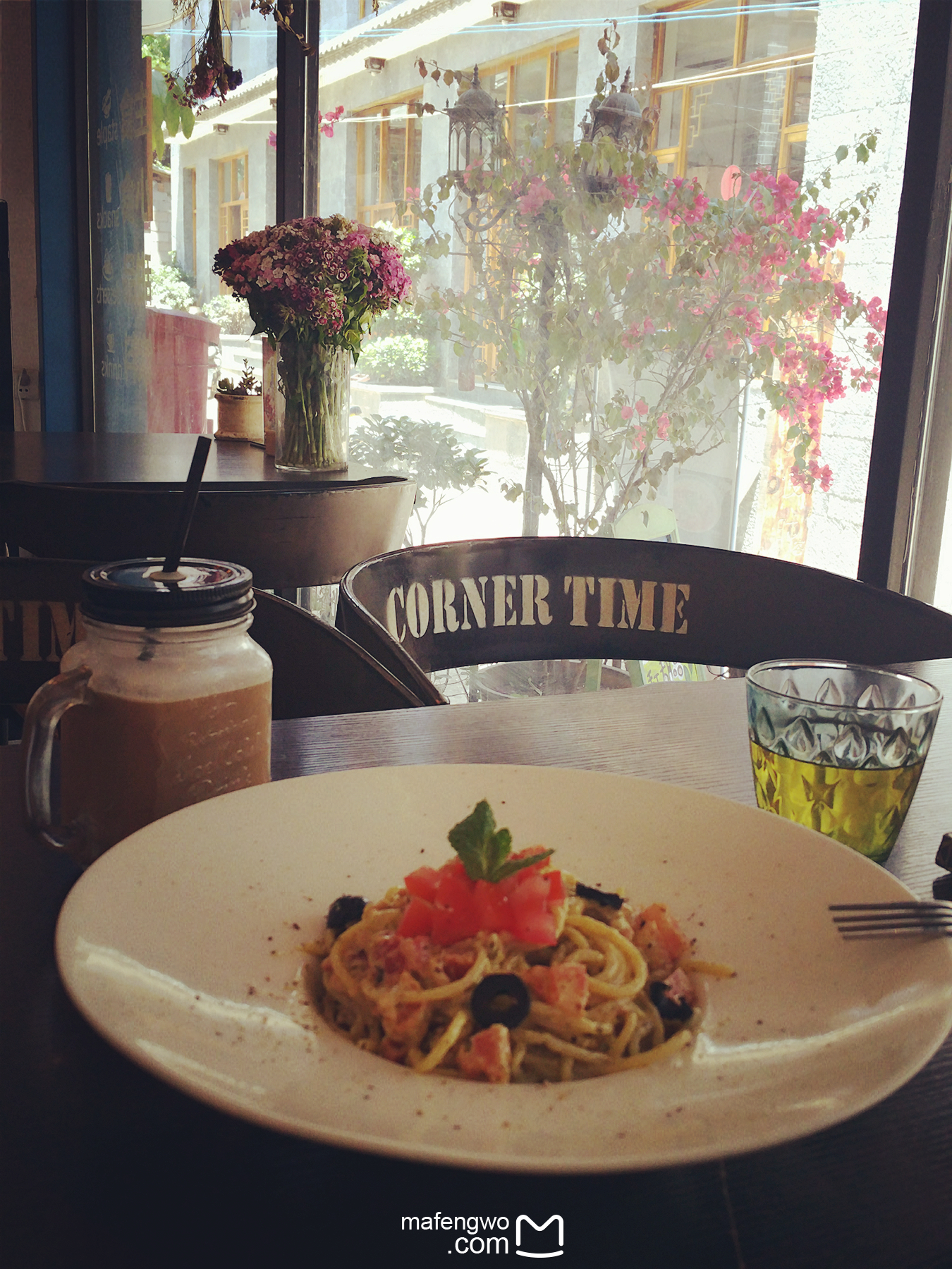 在他家点了一份培根罗勒意面,好多油,味道嘛,还好吧。手工焦糖奶茶也还好。他家可以寄明信片,顶层还有个小花园。