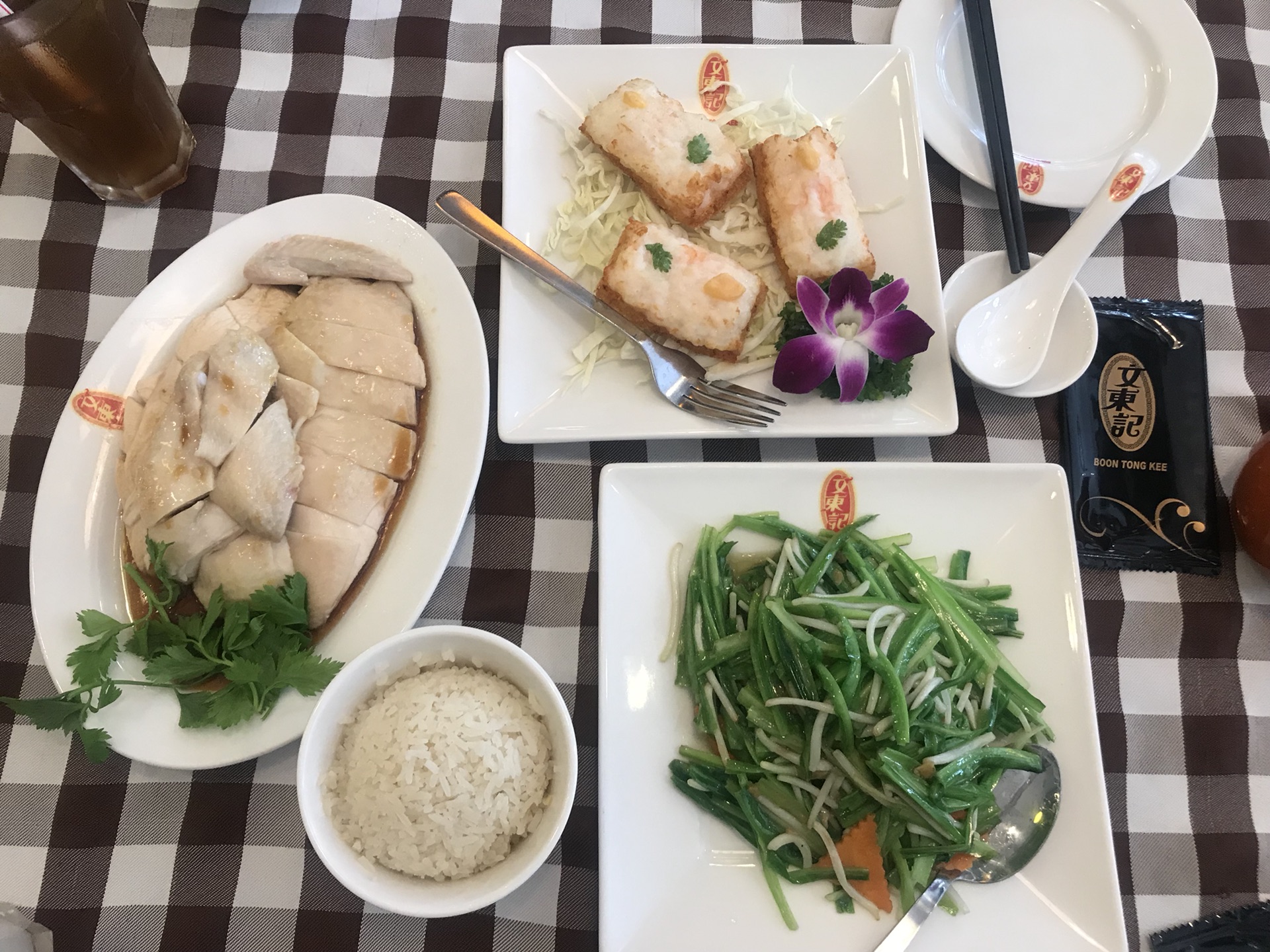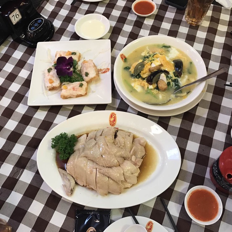 今天晚上到新加坡的 一天没吃饭极度饥饿 找了一下附近的餐馆便去吃了。大约晚上10点多了 ,餐厅里人还是很多的,由于我一人去的,只点了白切鸡和青菜,很多都是两人三人份的,点了吃不完。价位在新加坡应该还好吧,2菜再加一个马蹄莲饮料 110人民币左右。油饭很好吃(^ ^)