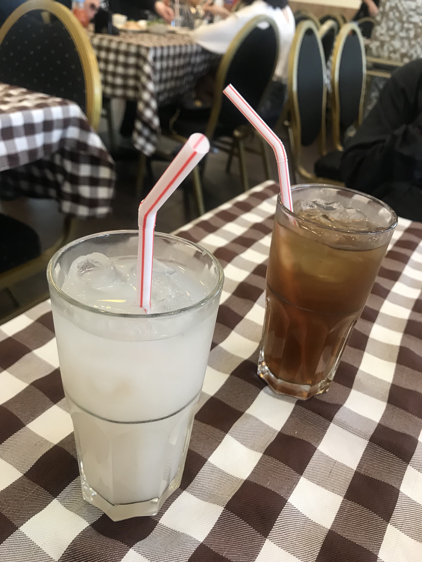 会提供几样饭前小菜,超级喜欢他家送的叉烧肉。另外,我们点了比较多人都推荐的菜,要了大份:海南鸡、油鸡饭、薏米水+酸柑水、菠萝咕老肉、酿豆腐、虾酱空心菜