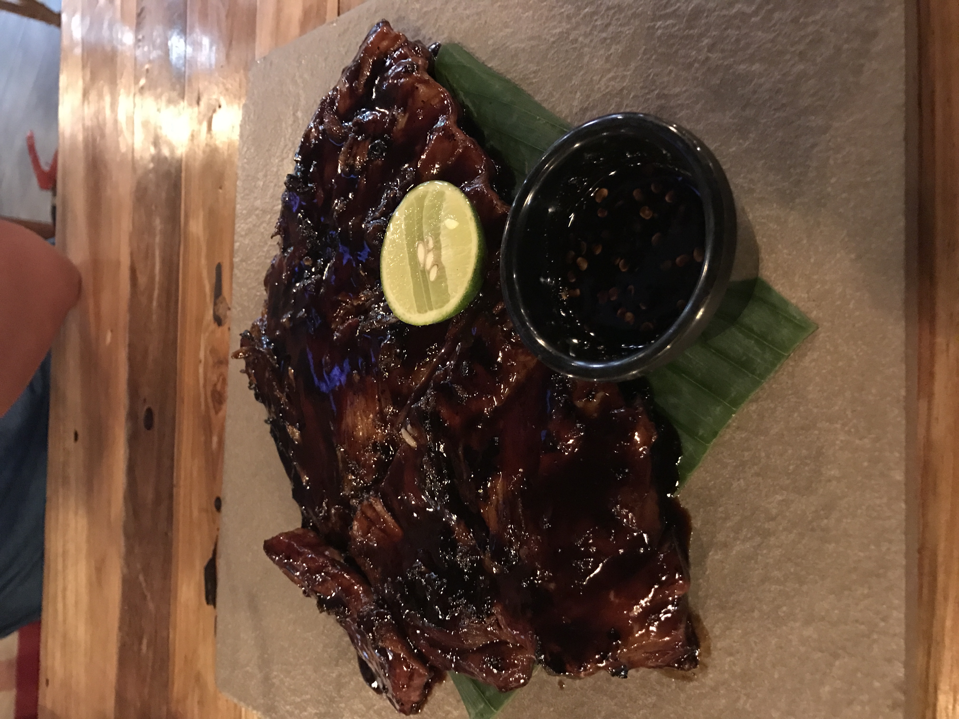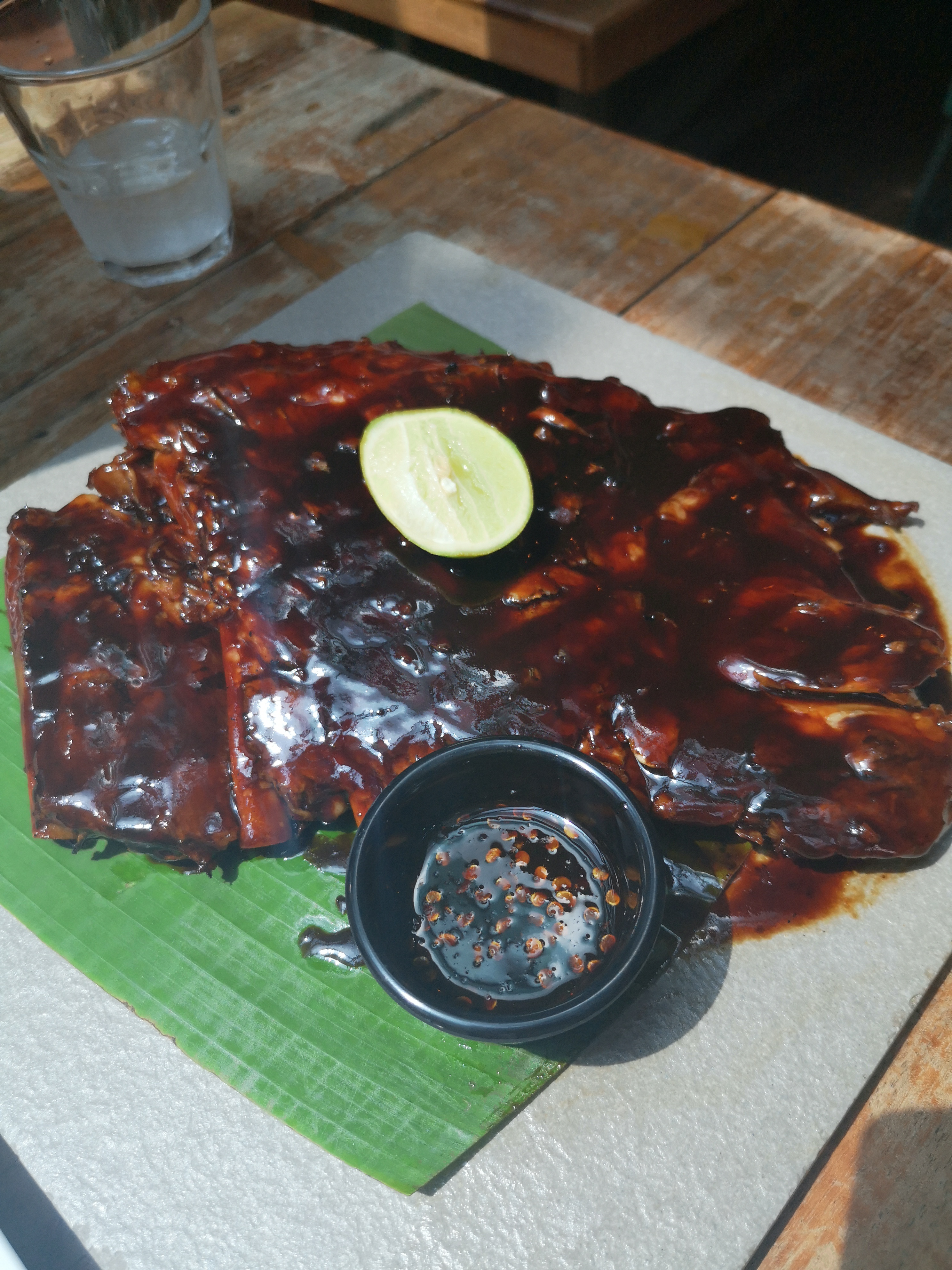 服务员热情,整个酒吧的感觉。主打印尼那种烤猪排,菜单上第一个招牌,47rm把,怎么说呢,太特么好吃了。大快朵颐的感觉。吃肉喝酒绝对是不错的选择。价格偏高,加上大马啤酒税非常高,酒非常贵,两个人两杯500ml左右的嘉士伯要80人民币左右,性价比低了些但绝对值得一试。