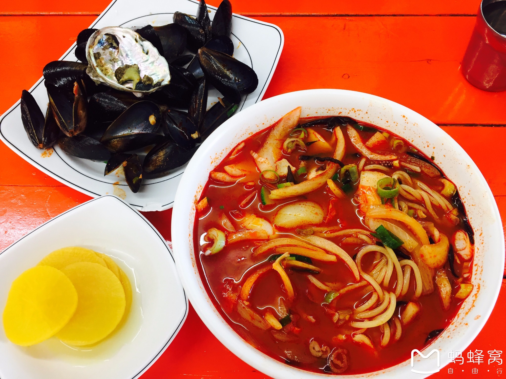 位于牛岛第四站——白沙滩正对面,很好找。面馆只有海鲜面和炸酱面两种,海鲜面13000韩元一碗,炸酱面8000韩元一碗,店里很多韩国人在吃,评价颇高。一碗海鲜面扎扎实实的,有两只鲍鱼,无数只青口贝,还可以自取可口的小菜,很超值!十分推荐~