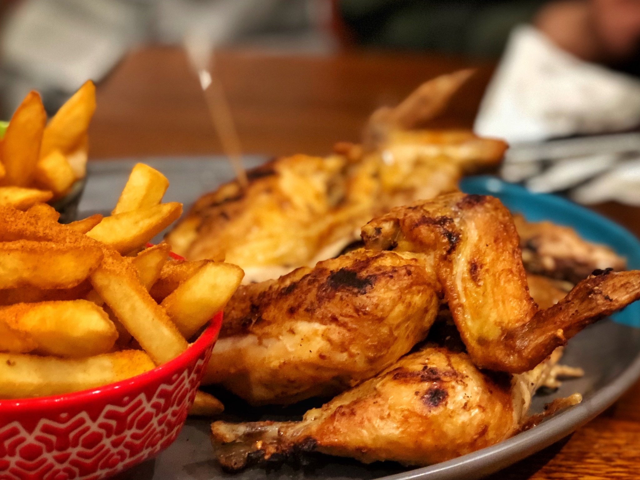 一般都是葡萄牙风味的烤鸡,可以买半只,四分之一只,也可以只要鸡翅鸡腿。记得要peri peri口味,最不辣的那种