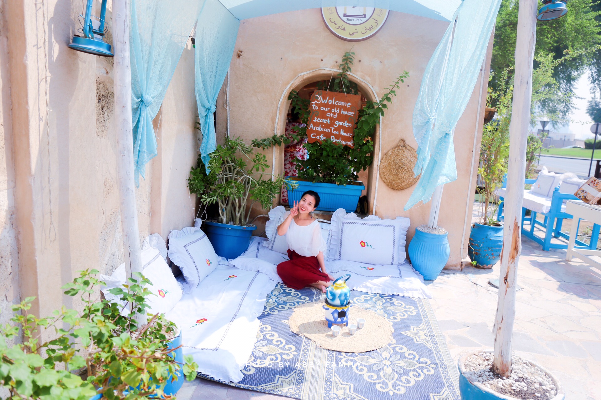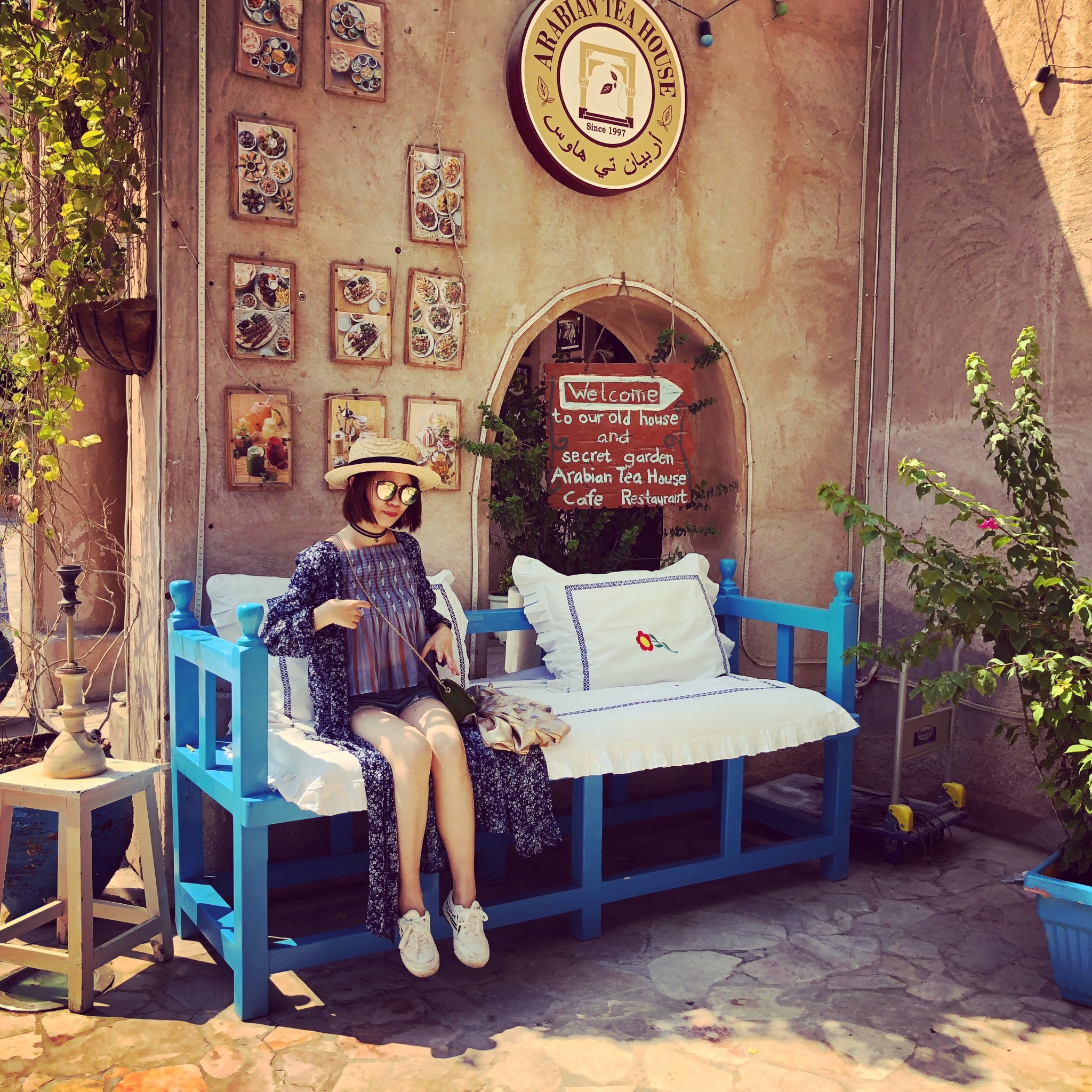 这家算是迪拜网红店了,就在老城区里面的马路边上~典型的阿拉伯式风格,但是当天排队人太多了就没进去,在外面拍了张照(店主很贴心专门布景供来往的游客拍照)