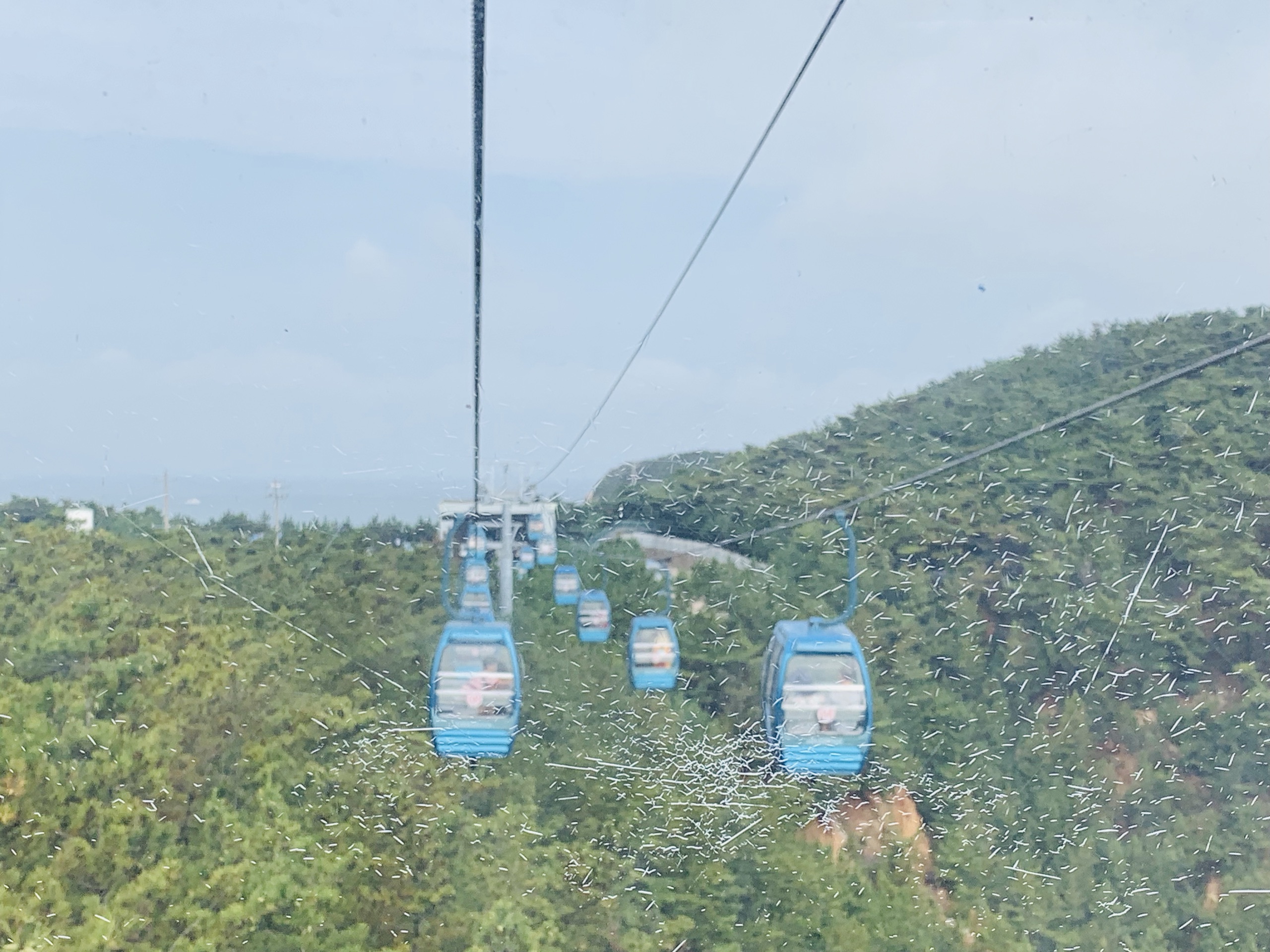 摩天岭紧靠海边,是一片起伏的山岭,沿着山岭修建了海边栈道,可以凭栏观海,海天一色与山海景观尽收眼底。景区盛产水晶,地上有水晶展馆,地下水晶洞密布,令人叹为观止,但现在已经不允许开发了,只供参观。山腰的悬崖峭壁间有空中栈道,人在栈道上走过,巨浪在脚底下咆哮,非常刺激,极其考验勇气。这里还有亚洲最长的跨海索道通往成山头,可以搭乘悬空索道穿行于海边的峰峦翠柏之间,体验云间穿梭,俯视碧海仙境。