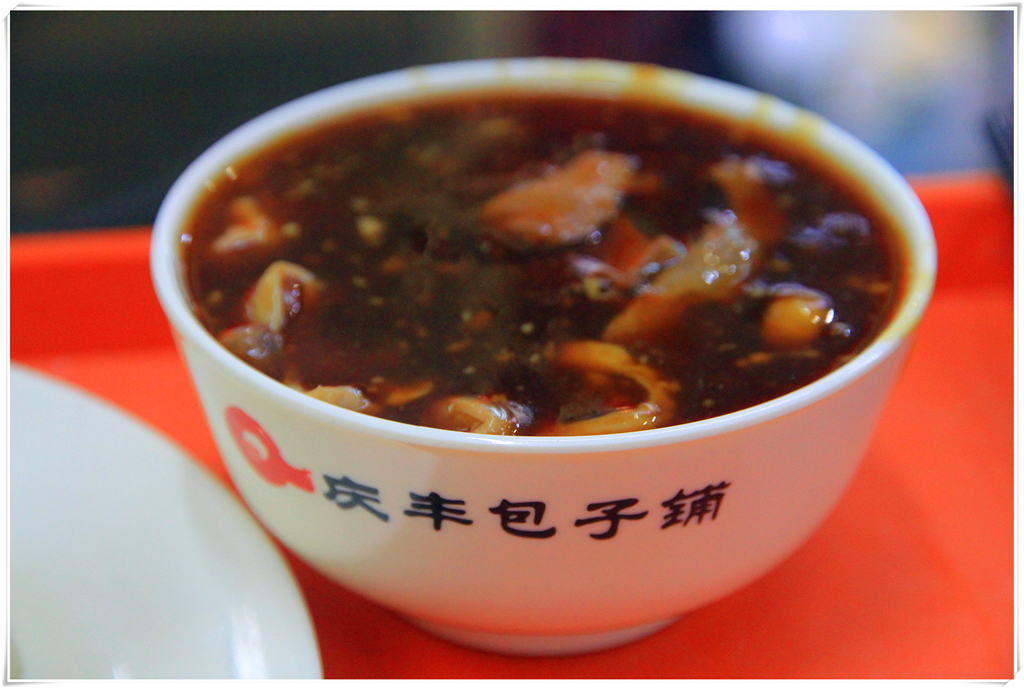庆丰包子,也算得上老字号,主营包子和一些老北京特色小吃。这次点的烧卖和炒肝,说实话都不合我的口味。烧卖馅少,而且皮太硬太干,想是在蒸笼上反复蒸炊过的,还是咱粤式茶点的烧卖卖相和口感更好。炒肝属于北京传统早点,主要原料是大肠、猪肝,经过水淀粉加入酱色勾芡,使得汤汁变得浓稠。味道真形容不了,勉强吃得下吧。