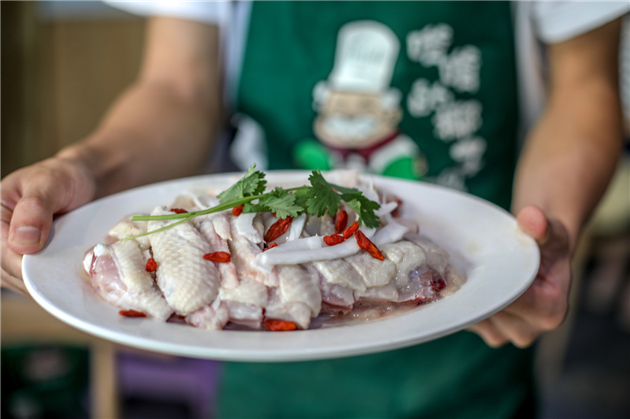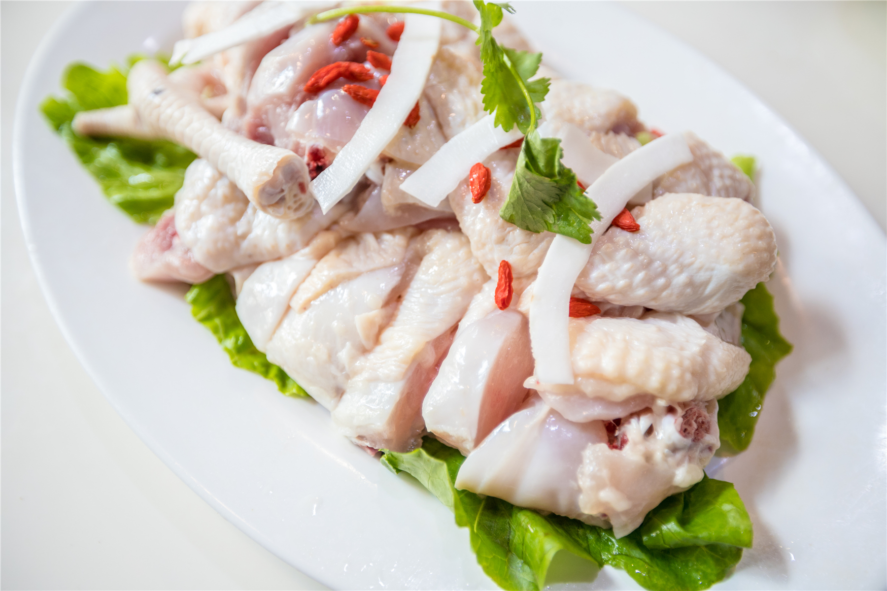5分钟后终于可以开吃了,承诺放养160天的文昌鸡肉质结实,与特制的酱油配上鲜辣椒碎和沙姜碎,更能吃出鸡肉原有的味道。
