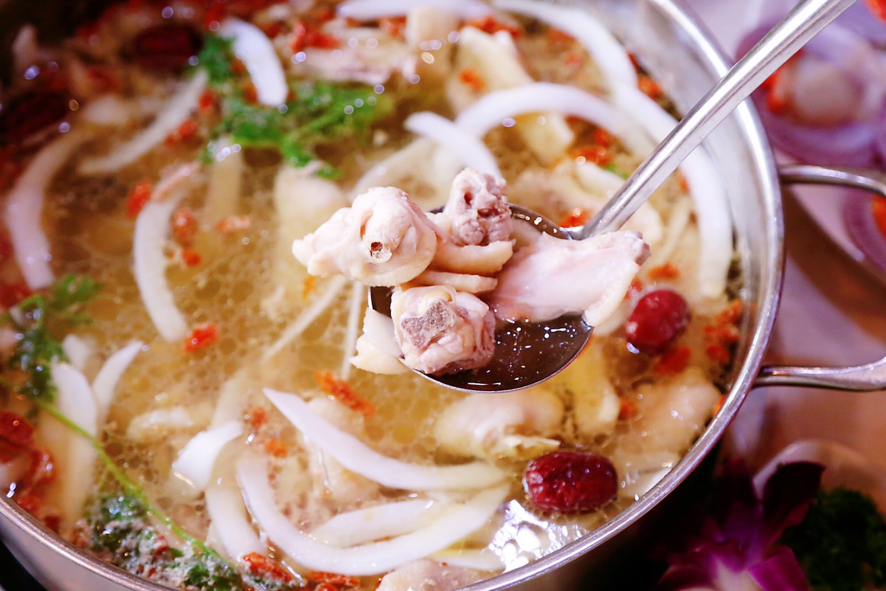 嗲嗲的椰子鸡传承黎族人的地道做法,三个椰子一只鸡,每个锅底都用三个椰子的椰子水制作,配上椰子肉、荸荠等配料作为锅底,原汁原味,无比清甜。