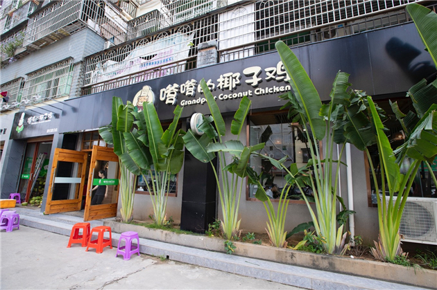 嗲嗲的椰子鸡,位于 三亚 市区明珠广场旁边,嗲嗲的椰子鸡,在 三亚 拥有众多分店,当地的网红餐厅,位于明珠广场右侧就有一家,环境还是可以的,平日里都要排队,人气火爆。不同于其他店铺,而嗲嗲家选所的鸡种却是 文昌 鸡,这样的食材简直无可挑剔,满足我们再次享用 海南 四 大名 菜的愿望。店铺门口颇具热带气息,数棵芭蕉树立于门外,就如等候着我们前来的使者。