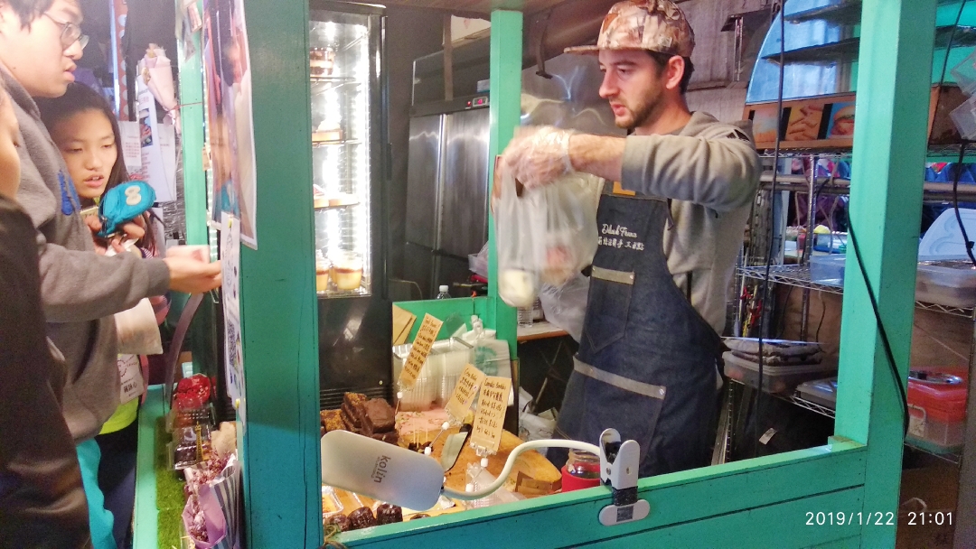 台湾的珍珠奶茶,喝不腻。和平常喝的奶茶太不一样了(我在国内奶茶店买饮品的时候从来不点奶茶,都是点果汁,但是来台湾之后发现奶茶真的特别好喝!) 並且感覺黑糖/焦糖的奶茶真的特別特別特別好喝的! 遇到了一个卖法国甜品的外国小哥哥,他家生意很好啊。