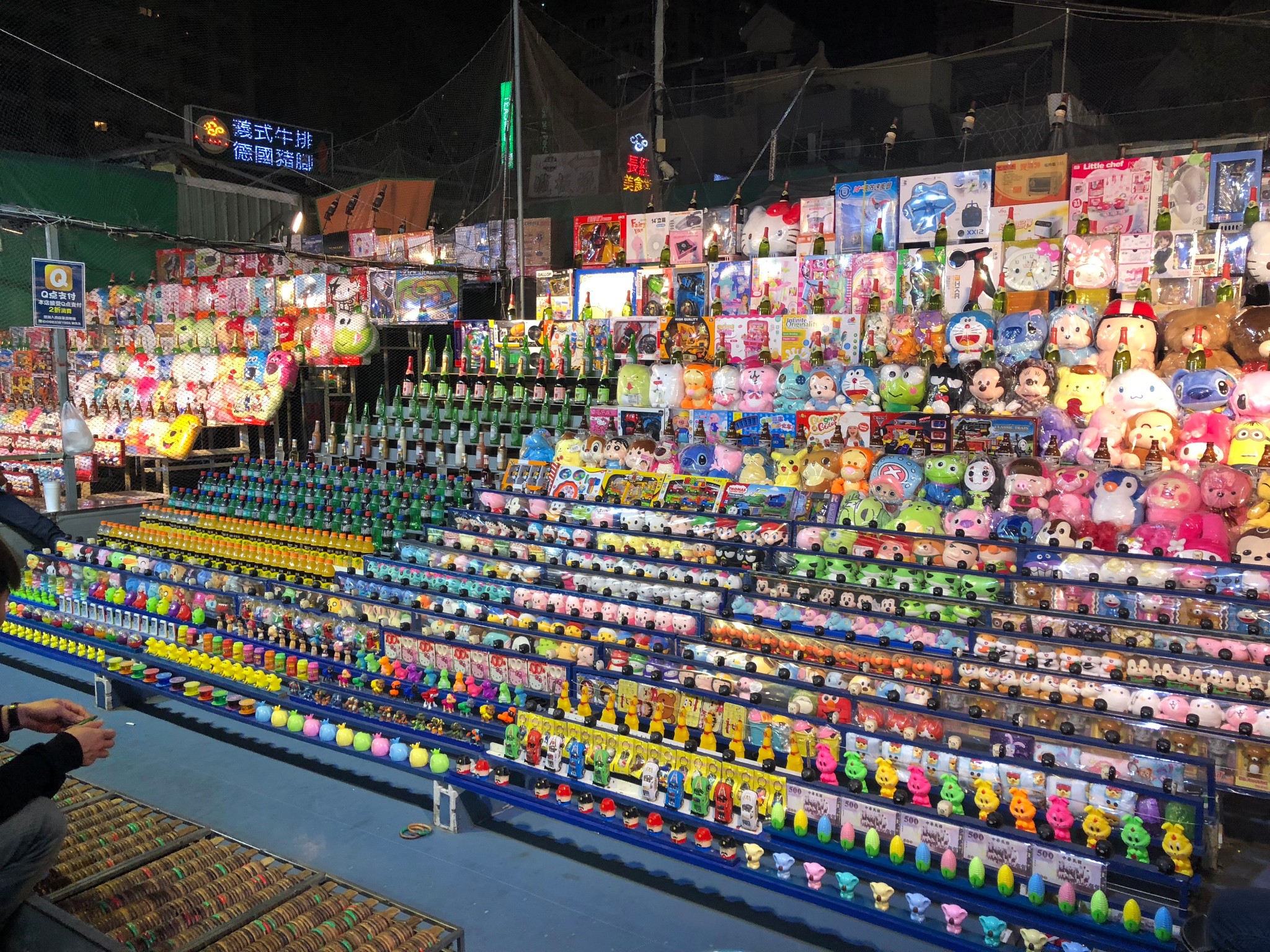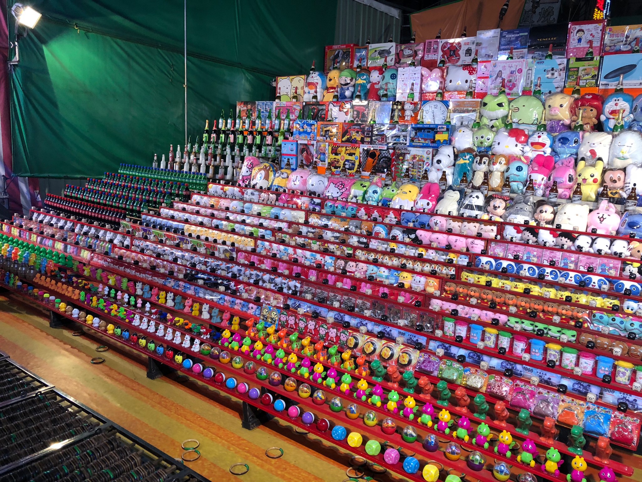 去到震惊了,像穿越回旧时代,除了美食,还有一些摊位是玩弹珠机、玩射箭、玩射气球等等游戏,射中几个能获得什么小玩偶,大陆这边已经很少这东西了,现在公园都放电子游戏机了。还有赌博区域,真的感觉穿越了。