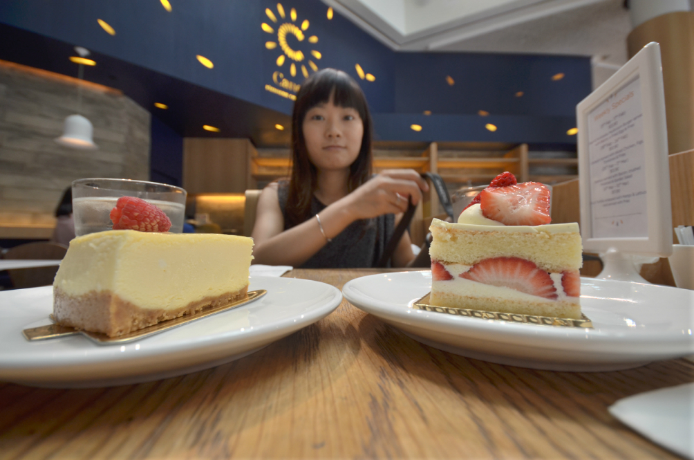 下午茶时间,shoppingmall里面的餐厅真心贵。两块蛋糕,折合人民币80元。不过很好吃的说。