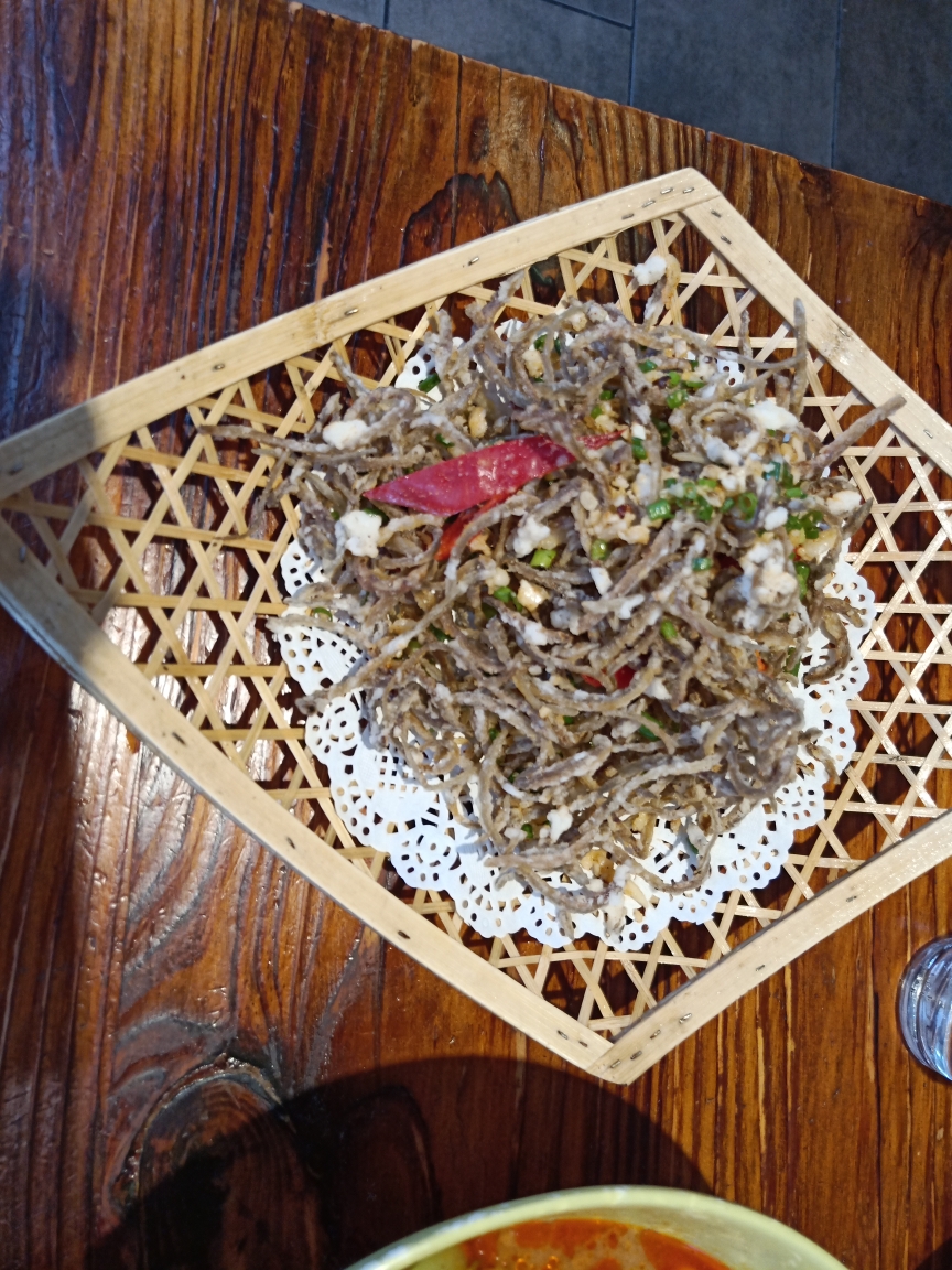 吃的特色菜。我对这里的饮食吃不惯,尝一尝而已,主要还是吃点青菜吧。大厨的餐厅对面就是一家甜品店。
