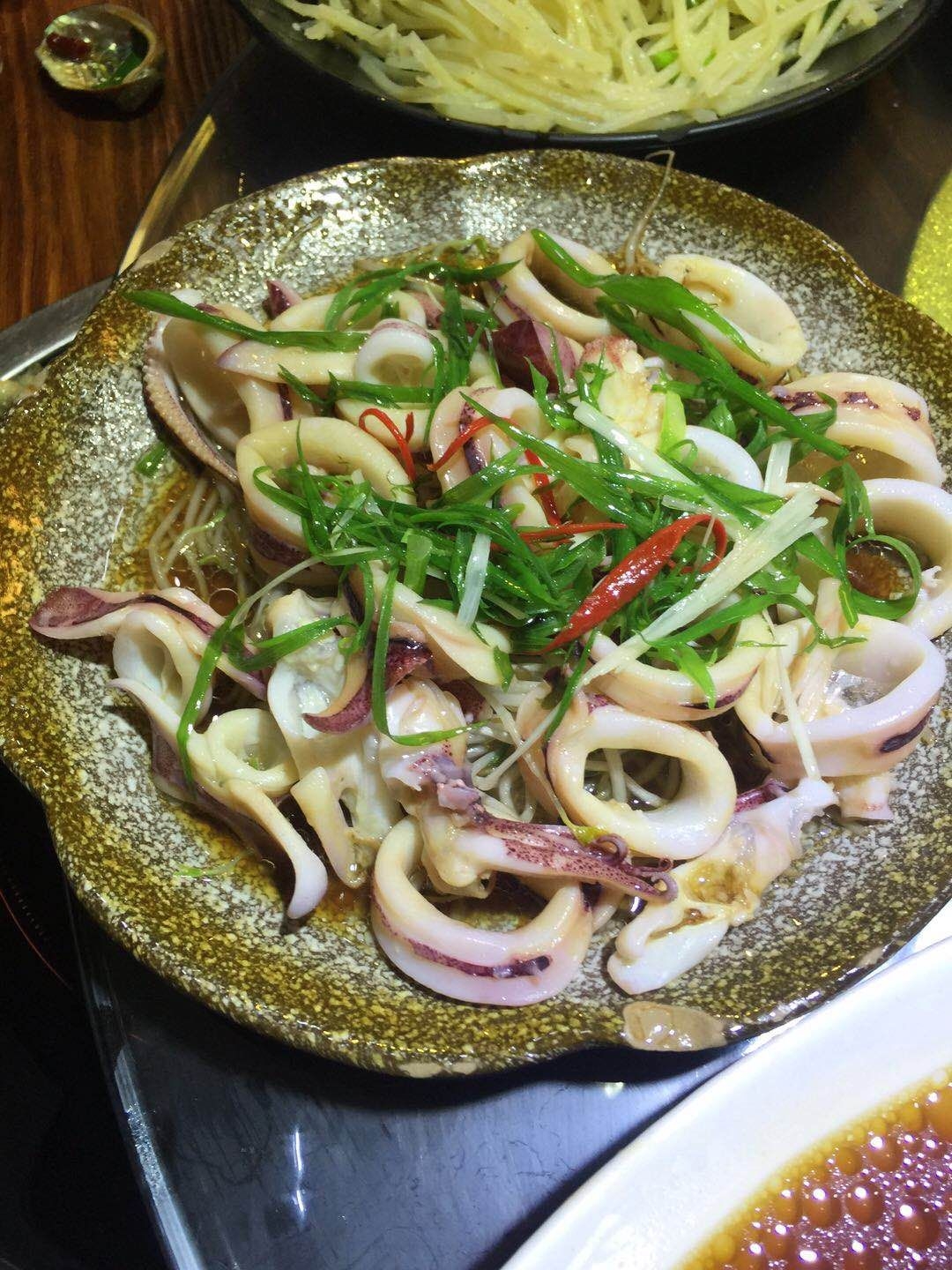 大厨海鲜锅,里面海鲜有石蟹、鱿鱼、鲜虾、花蛤、青口贝,素菜有花菜、莲藕、莴笋、土豆等等,份量还是很足的,海鲜也都特别新鲜,味道也挺好的,稍有一丢咸,另外素菜方面过于熟烂了口感上差了点。