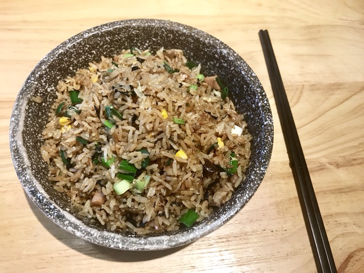 当然少不了主食,紫菜炒饭,不愧是《舌尖上中国》的推荐,加了紫菜、玉米粒、香肠粒的米饭,粒粒分明,好吃停不下来。