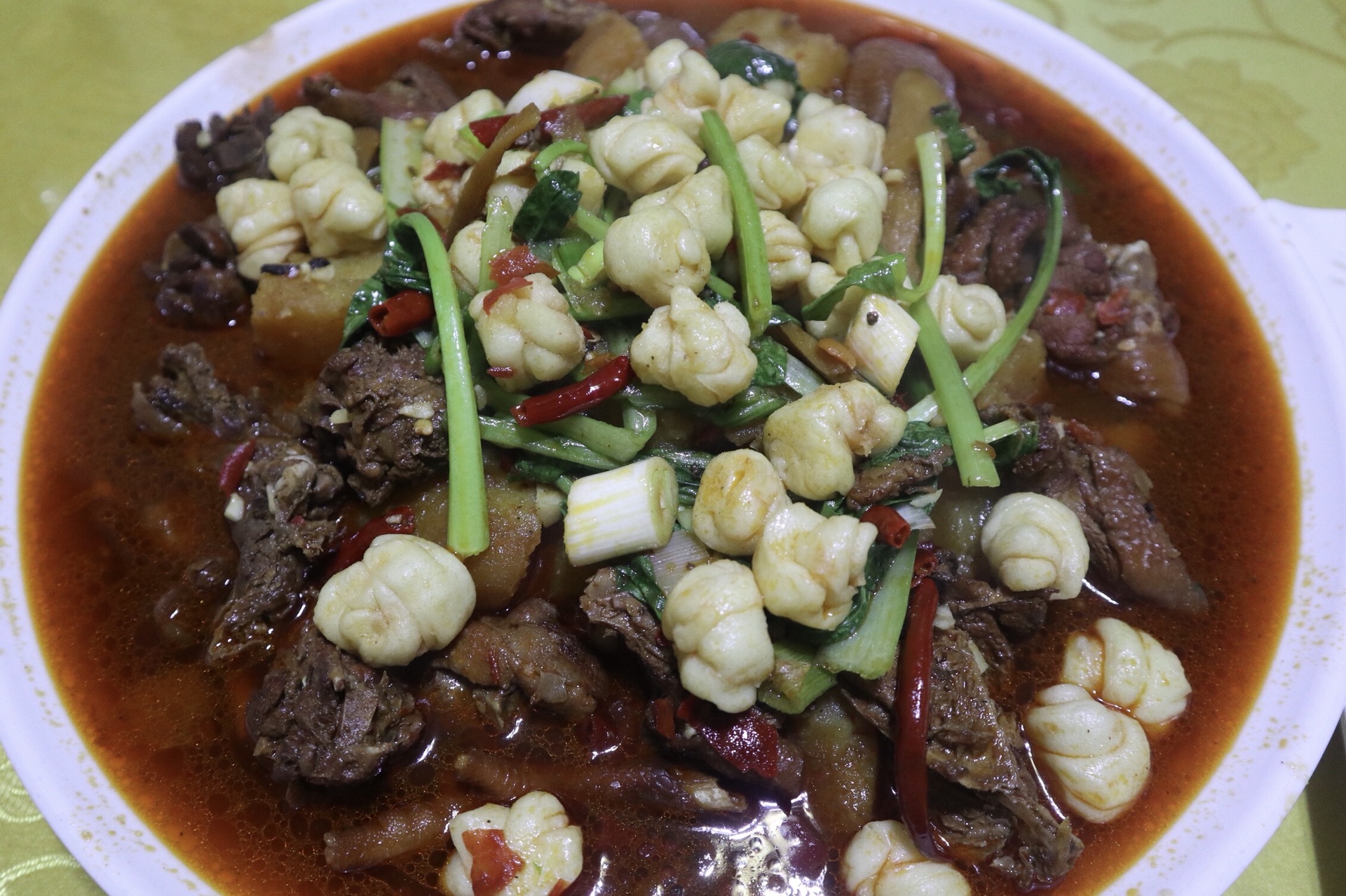 晚上去了美食街,马旭土鸡闷花卷,大众点评上排名第一,就在美食街的端头上。这是第二次来这里进餐了,鸡还是那么好吃,尤其后面的皮带面,真心好吃,推荐!