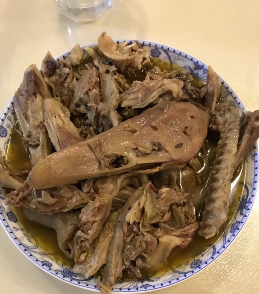 盐水鸭配花椒油?略显油腻但还是挺好吃的。