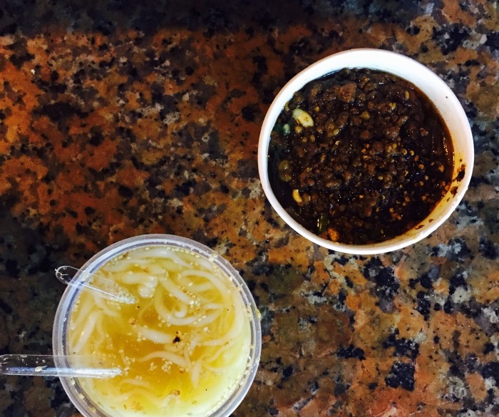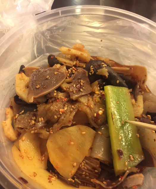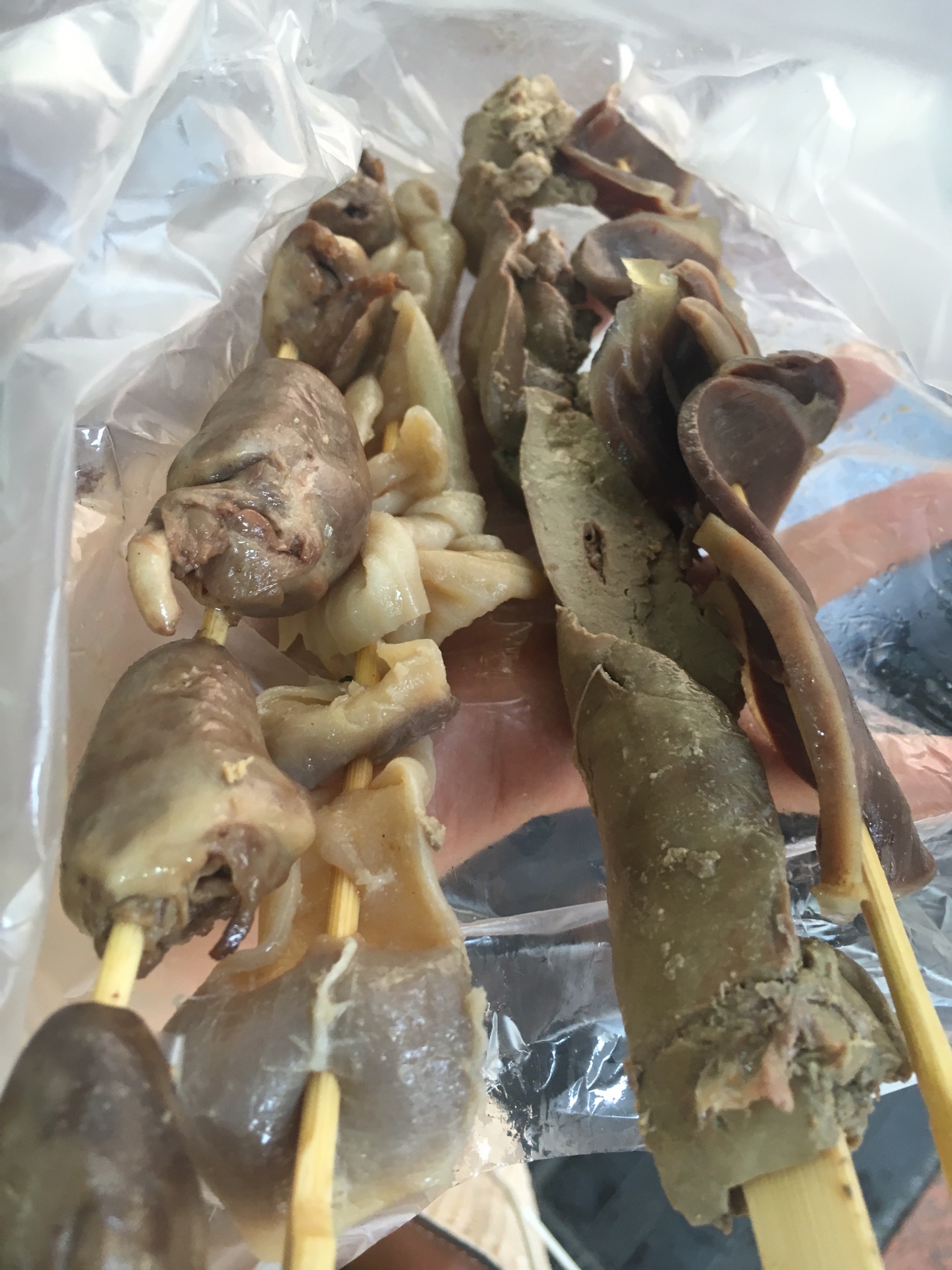 不用排队但是也会比较多人购买,其实形式跟撸串差不多呢,但是它是用盐水浸煮的,口味虽然不辣,可加上白芝麻与芝麻油融合嚼起来很香。