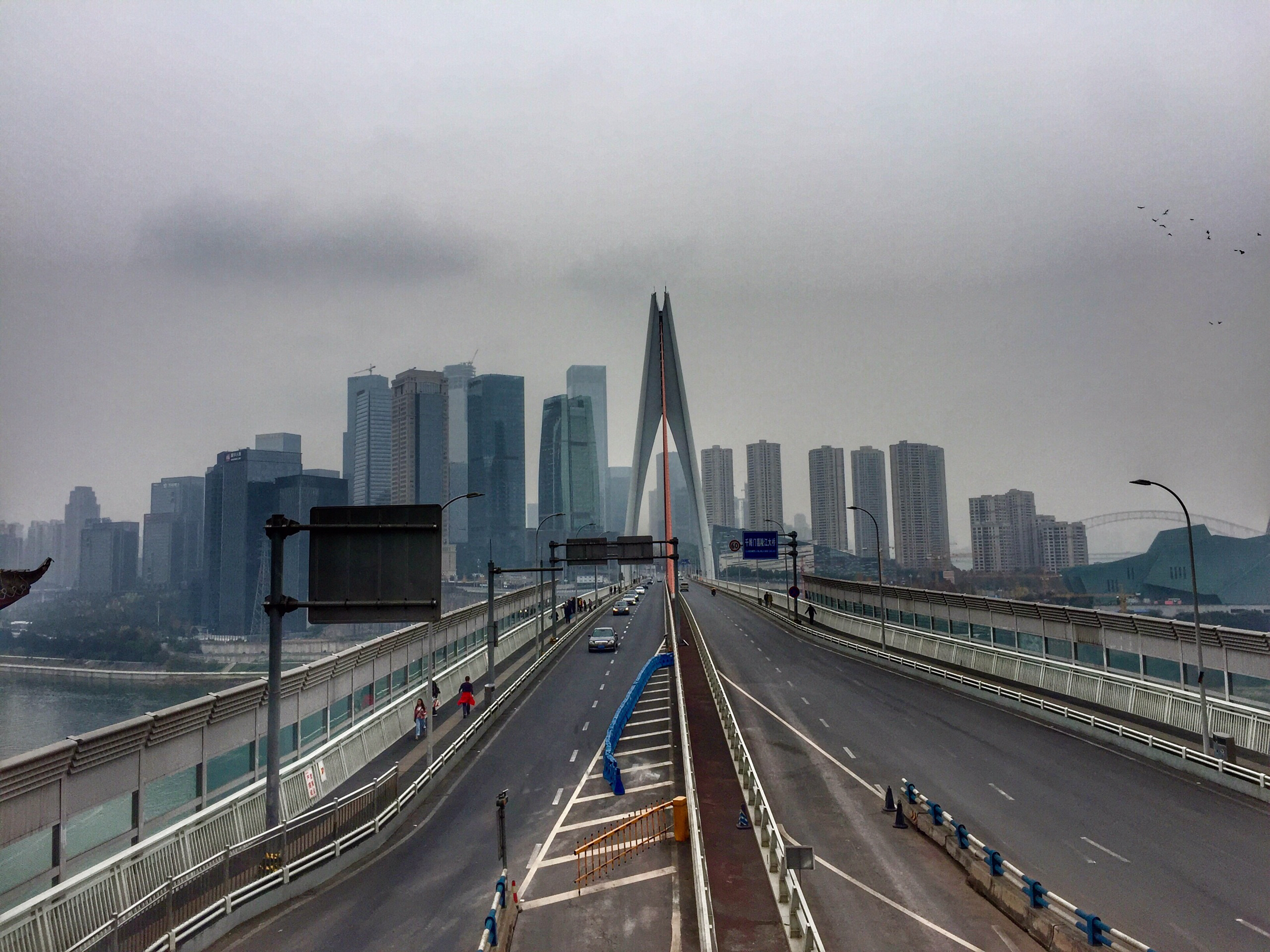 ·朝天门大桥连接解放碑、江北城、弹子石三大中央商务区;全长1741米,是主城一条东西向快速干道。
