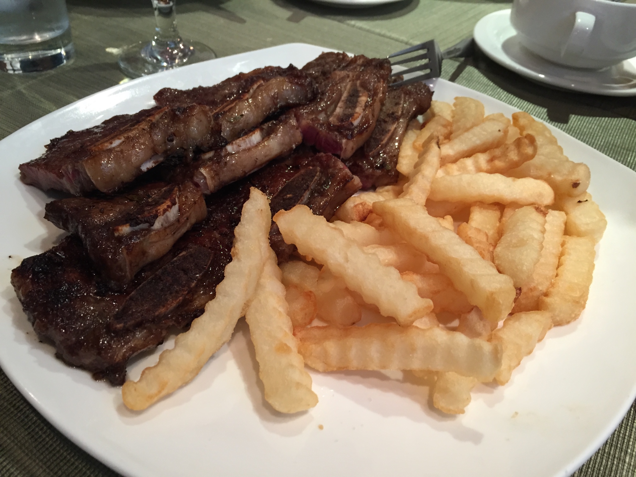 没有预约就要等位,真心是等了一个多小时。菜是真心贵呢,一盘什菜也就是西兰花包菜竟然标价100,坑爹呢。牛仔骨也咬不烂,葡国鸡咖喱汁拌饭还不错,就是配的饭太少了,马介休球敢情就是土豆,配上几粒橄榄,真心很一般,还不如住的濠璟酒店的葡国菜,价格便宜一半还好吃。四个菜就是600,贵的离谱。