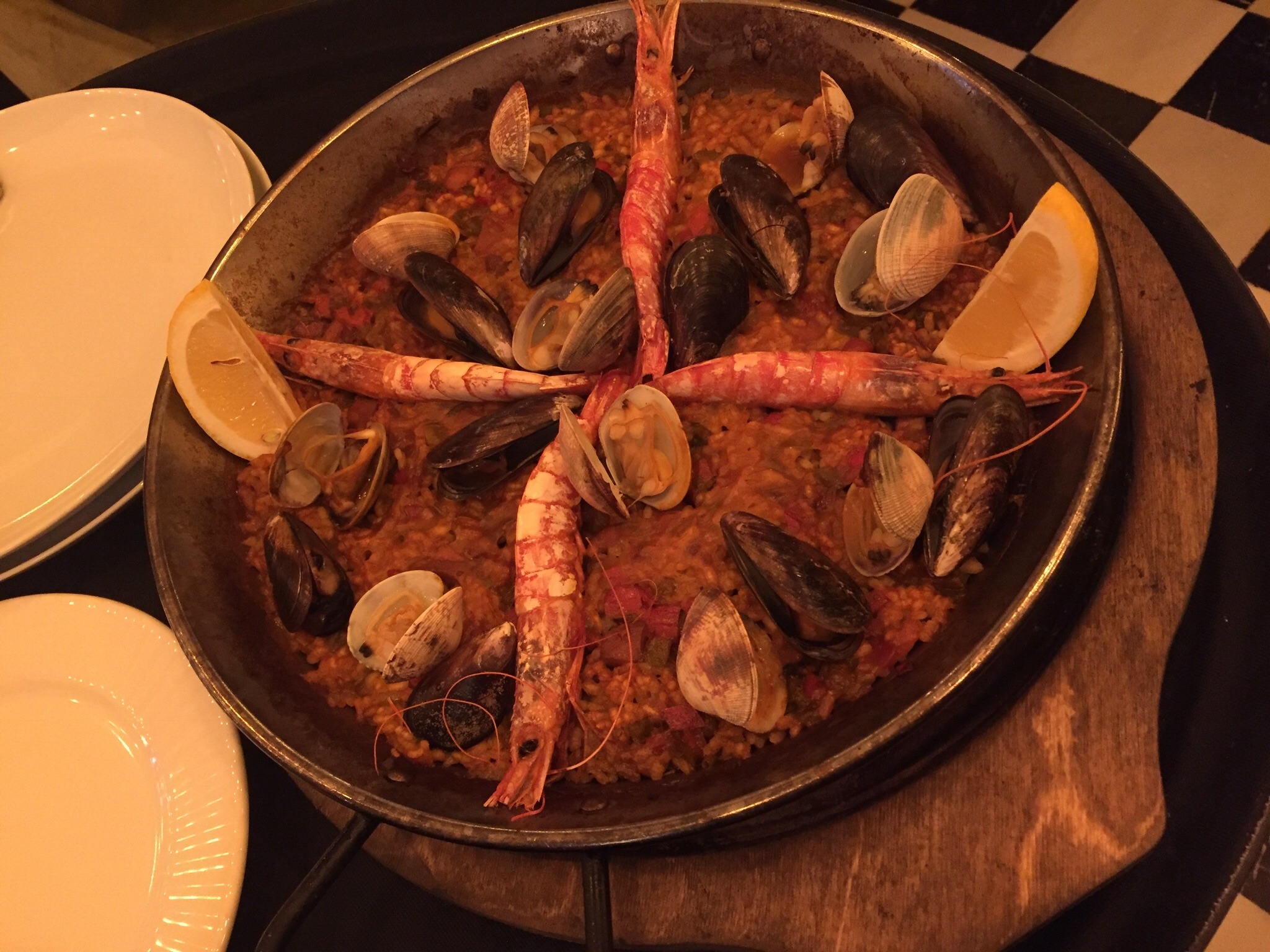 点了特色的火腿和海鲜饭,花了68欧,环境真的是不错,不过味道嘛,齁咸齁咸,而且米饭完全是硬的,打破了我们对西班牙海鲜饭的幻想。