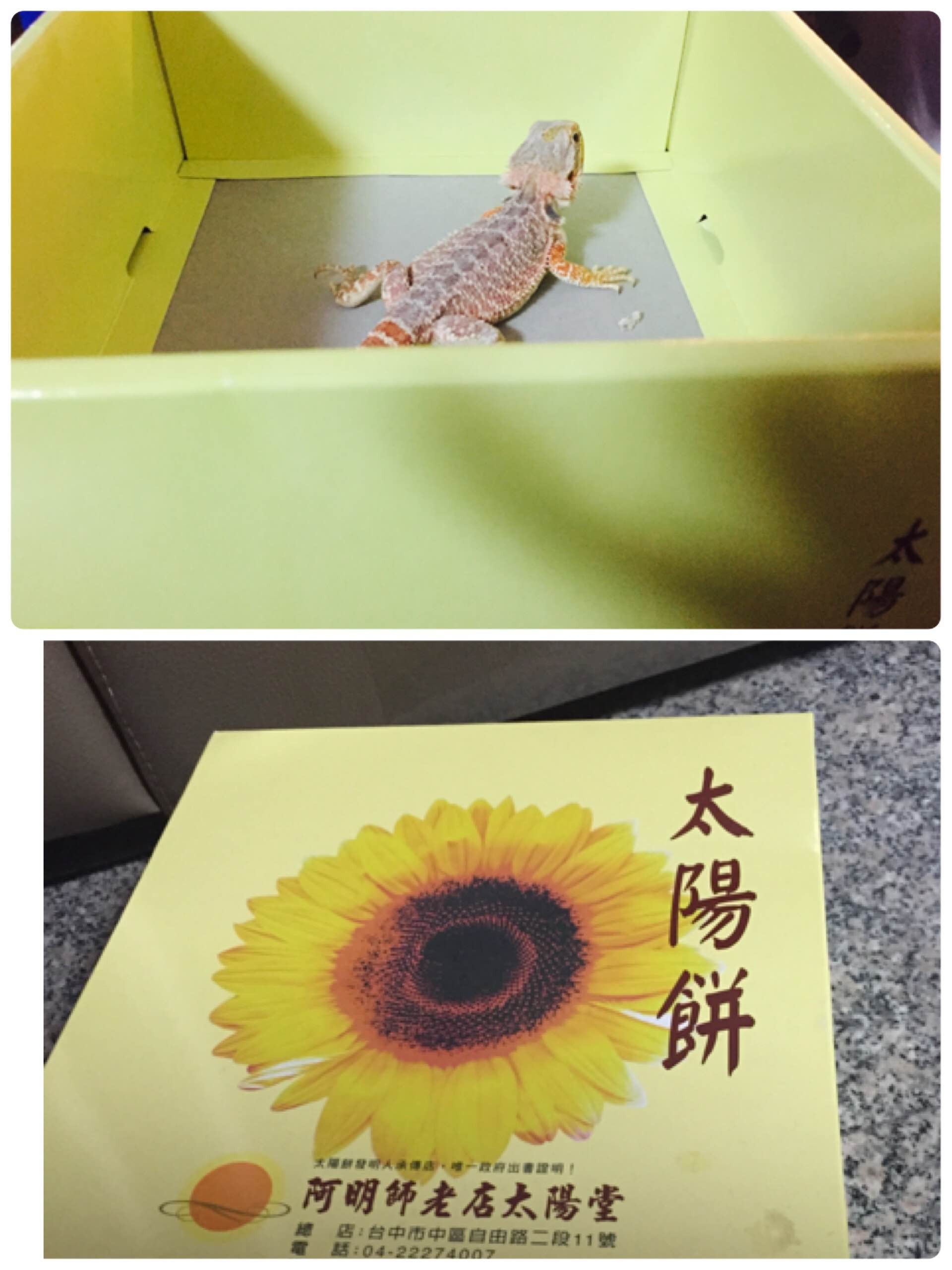 超喜歡的阿明師傅太陽餅!覺得買少了,謝謝熱情的帥哥帶我去買喲!有需要包車民宿的話,可找他喲!很熱情的,916-970-707 喲^^勤美草悟圈的民宿及 一中夜市附近都有喲!順帶附上一下相片喲!連我家的小蜥也愛上 啊明記的太陽餅喲~哈哈哈^^ 感謝那劉大哥喲~!需要包車民宿的人,可找這位腼腆的台中達人喲!