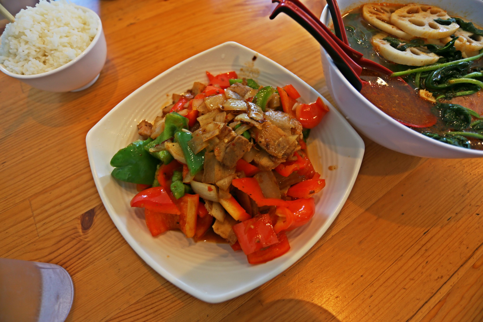 招牌麻辣烫,可以点五种菜,价格不分荤素(我们点的是五餐肉、龙虾丸、藕片、波菜、冻豆腐)、回锅肉、口水鸡,味道都很棒。麻辣烫的味道巴适得很,口水鸡也是名副其实;回锅肉特别正宗,豆瓣酱炒的带皮的五花肉,肥瘦相间,软糯适宜,配菜是元葱和青红辣椒,味道好棒!性价比最高,好吃不贵,而且不收小费。强烈推荐 如果你也去硅谷,一定要去品尝哦。