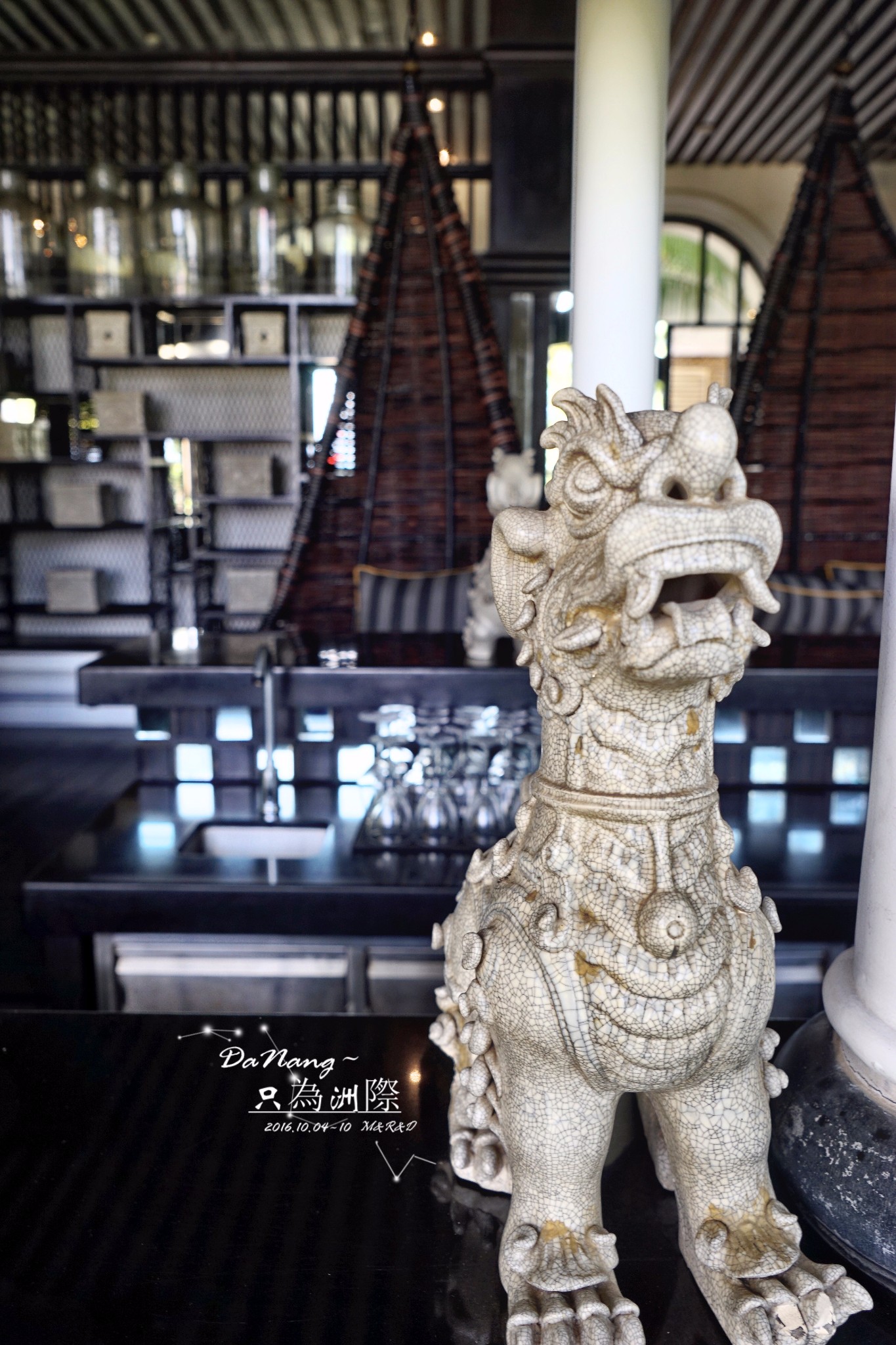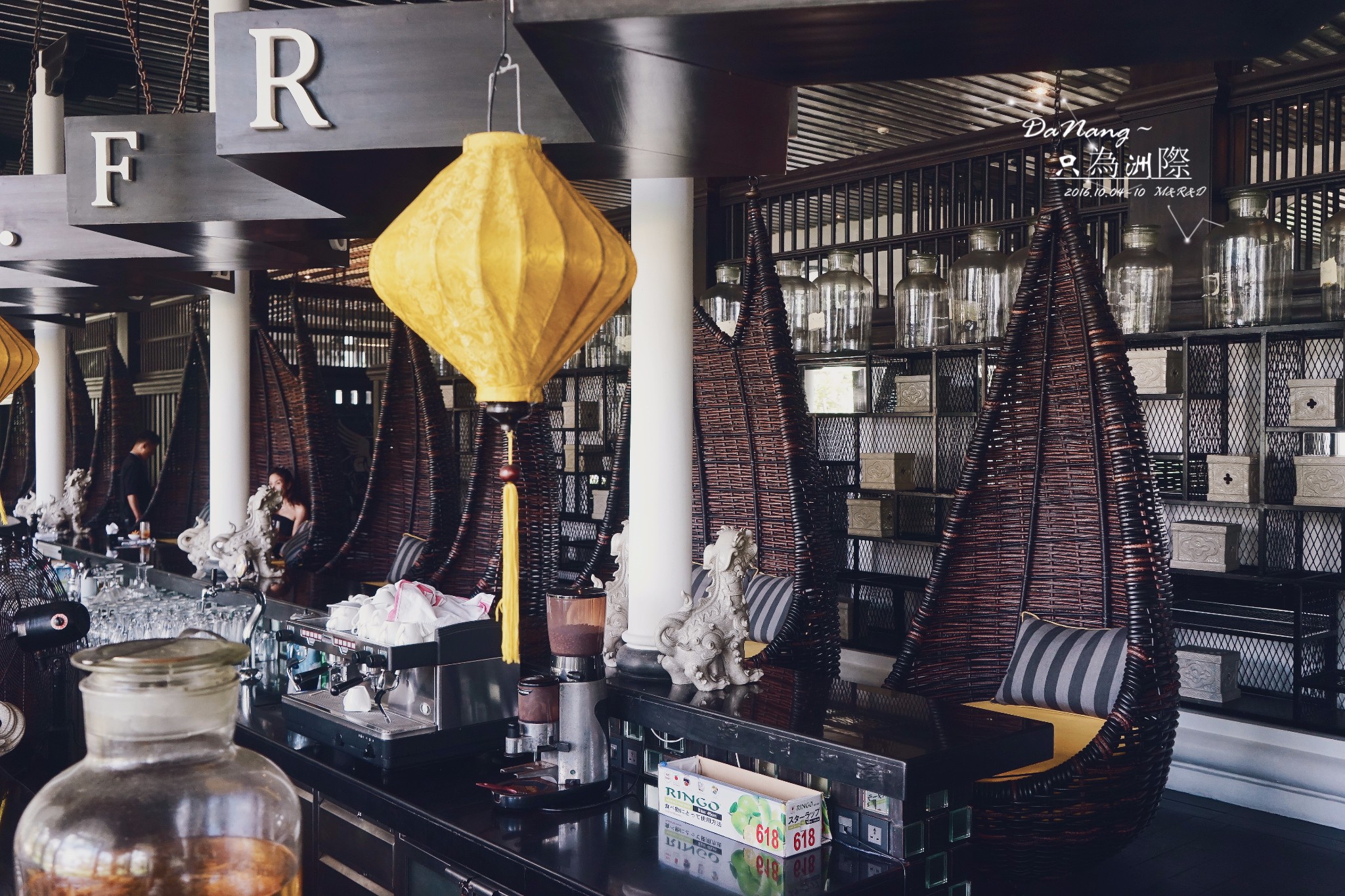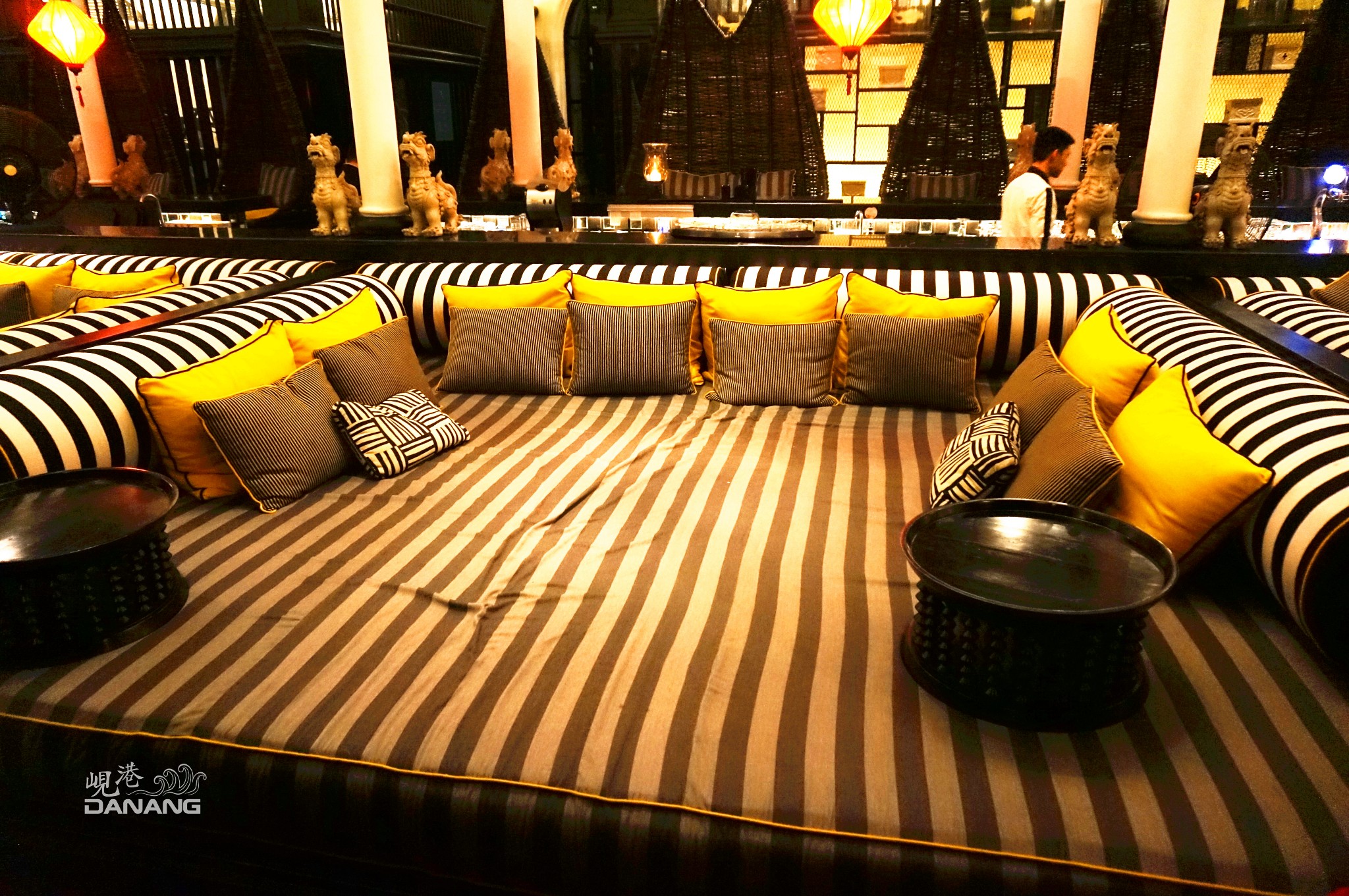 还有一个特色的地方,在泳池边走过去——就是极具特色的Long bar了。 这就是要去我们最爱的lang bar了! 长长的吧台,超级宽大的沙发,面朝沙滩,慵懒的躺在上面,好不惬意!每个沙发上面,还有个大圆盘来回摇摆,看起来像是机械扇,设计的精巧而独特!总之这就是度假~我们几乎每天上午泡在泳池,饿了就在这里享用午餐~躺下来咔嚓一张天棚~