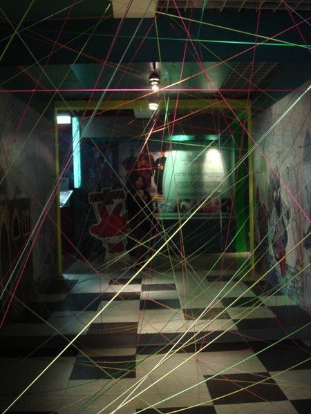 由布袋戏转为傀儡戏的舞台。转眼丝线密布,尽头的镜子透着清冷光芒。我着实是佩服馆中这样的小设计的。