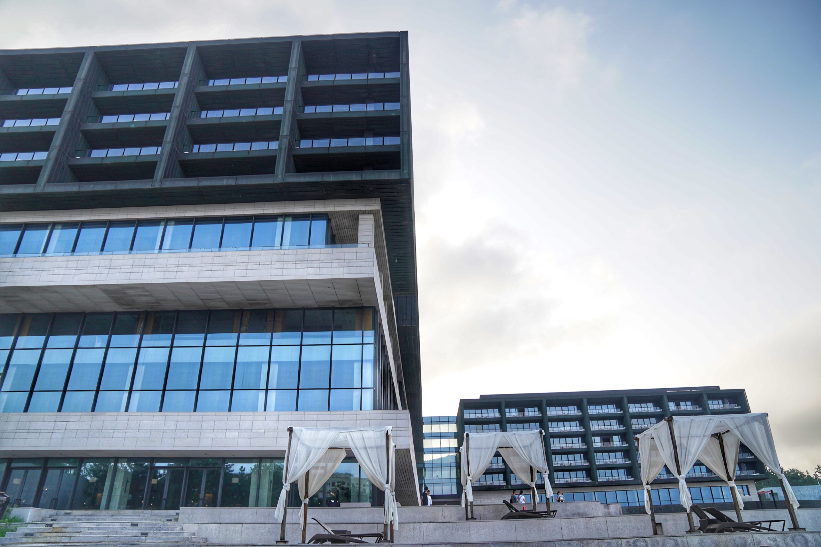 位于青岛新区黄岛 环境非常棒 游客不是很多 很清静 客房大概2000一晚 非常舒服 海景房视野无敌了 绝对是青岛第一酒店