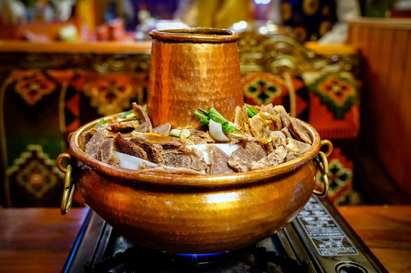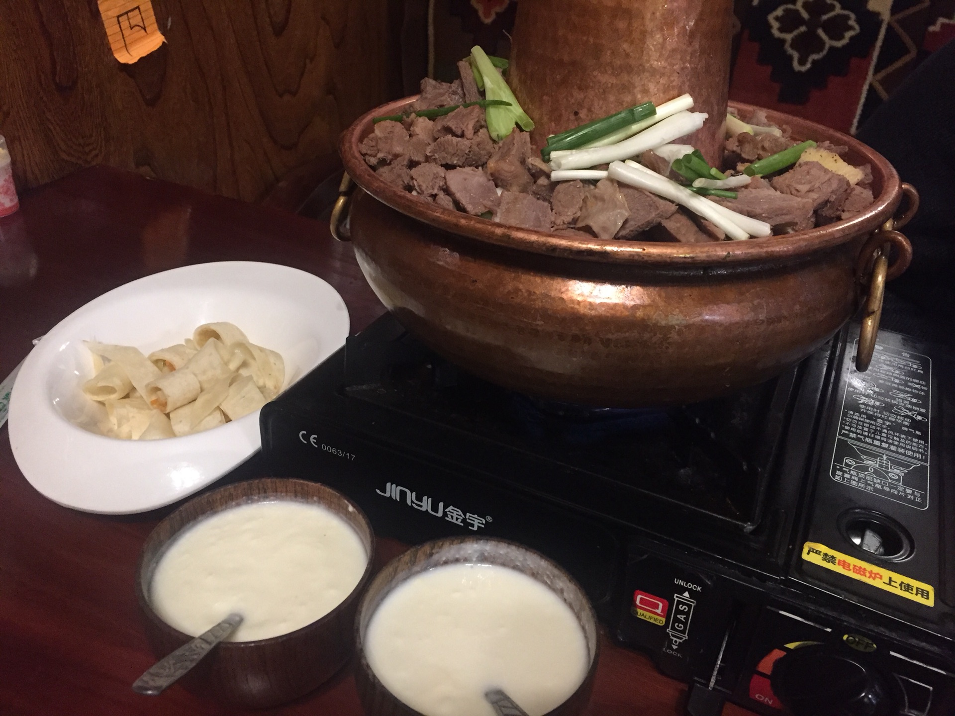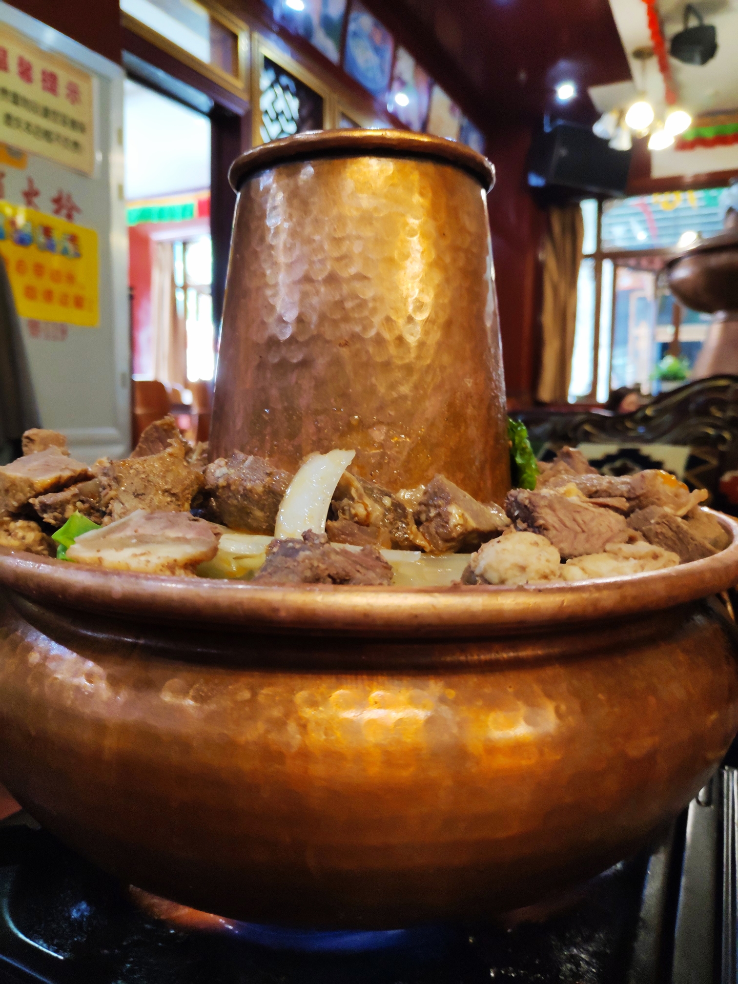 因为牦牛火锅过于油腻 同行的伙伴不太能吃 我是西北人还是挺喜欢牛羊肉 吃的比较多 这家藏式餐厅也是点评第一的店 饭点是没位置的 所以得提前来占位哦