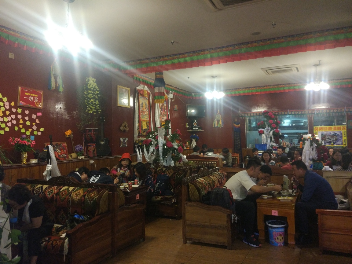朋友去过的一家藏式餐厅,里面的火锅、甜茶以及酸奶是推荐菜,店里还会免费送哈达。