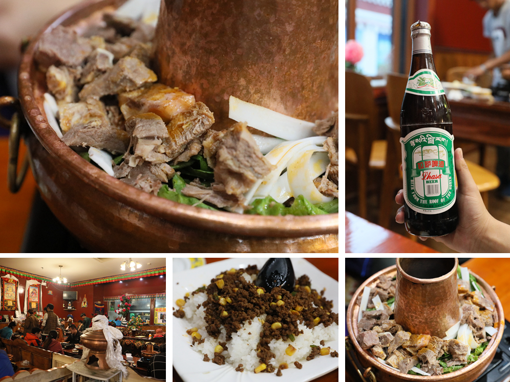 藏餐中的牦牛火锅是一定要吃的,配上手抓饭,再来杯牦牛酸奶,这餐管饱。