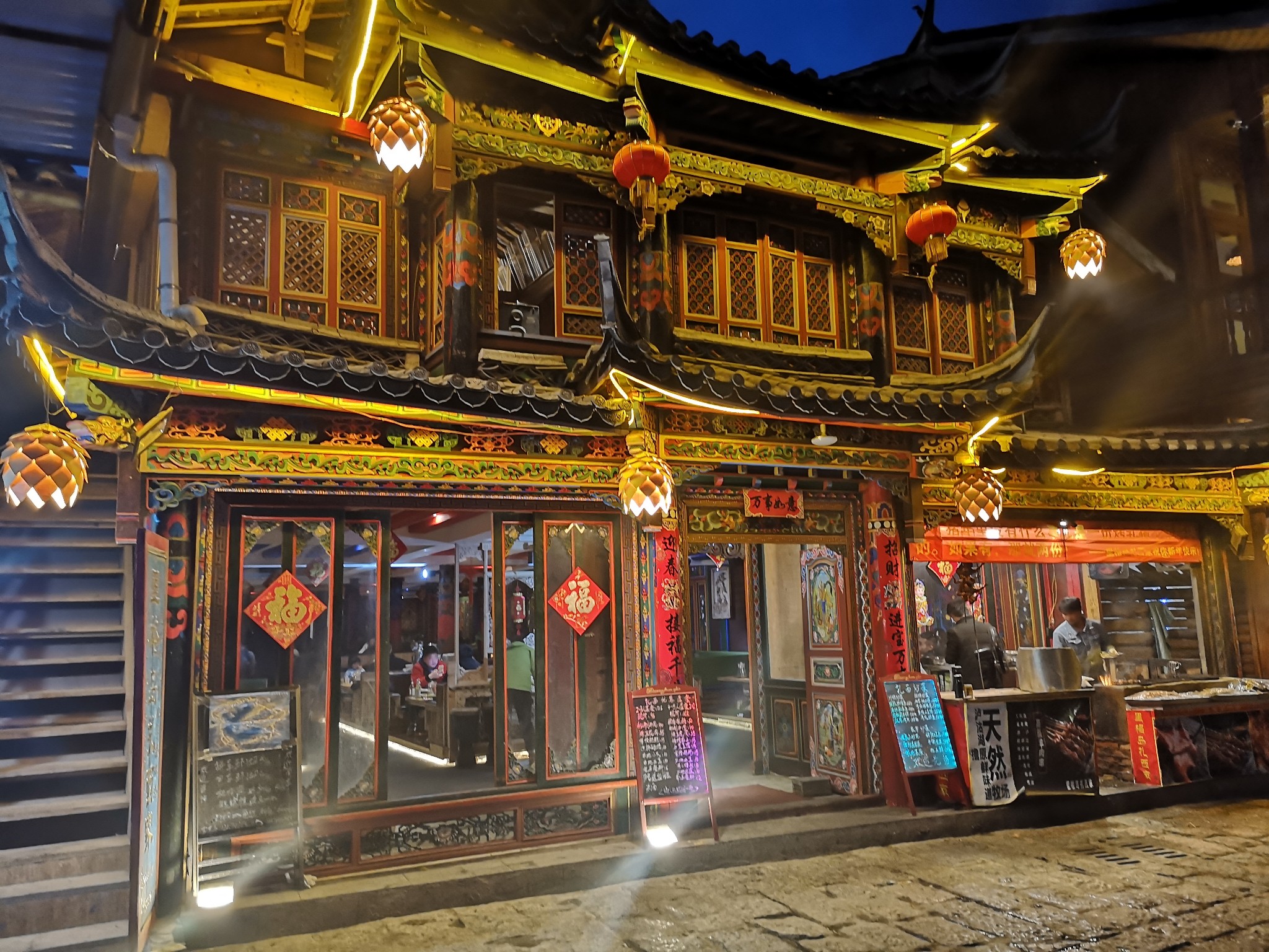 泸沽湖里格村中段,里格村比较热闹的地方,摩梭人的传统特色装修,烤乳猪好吃