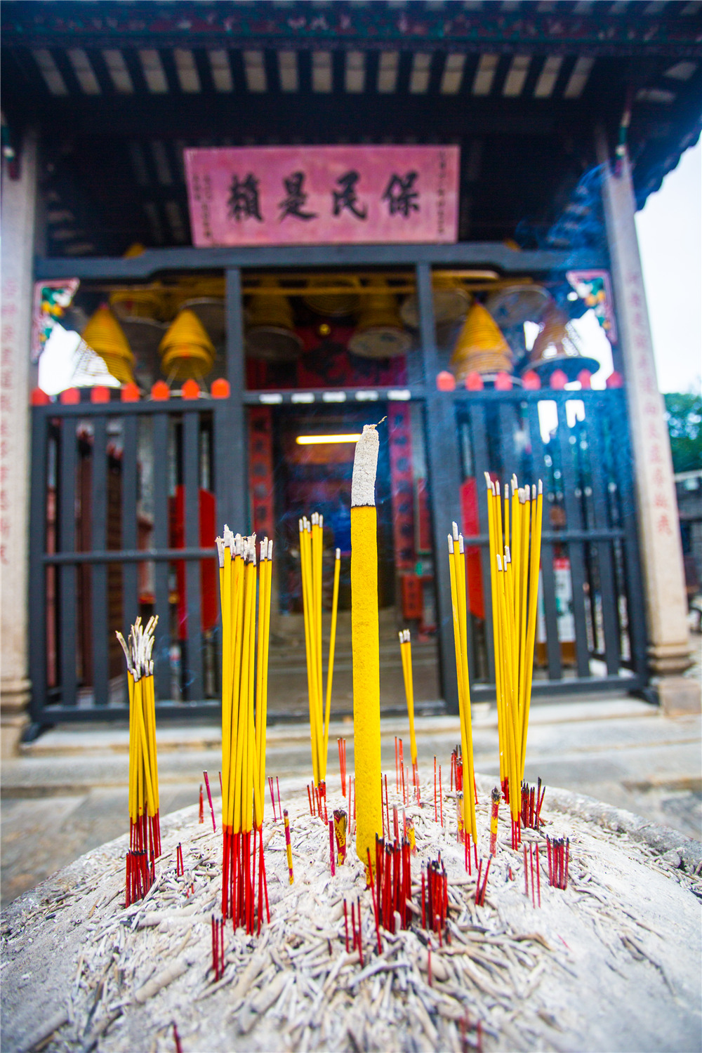哪吒庙不大,坐落在澳门大三巴牌坊后的小山坡上,屹立在翠绿的炮台山下,依附在旧城墙边。哪吒庙,顾名思义是供奉哪吒的庙宇。在哪吒庙的正殿里,供奉着形态各异的哪吒神像,最中间的一尊,神态活泼,透着灵劲像极了小时候熟知的“哪吒闹海”里的形象。