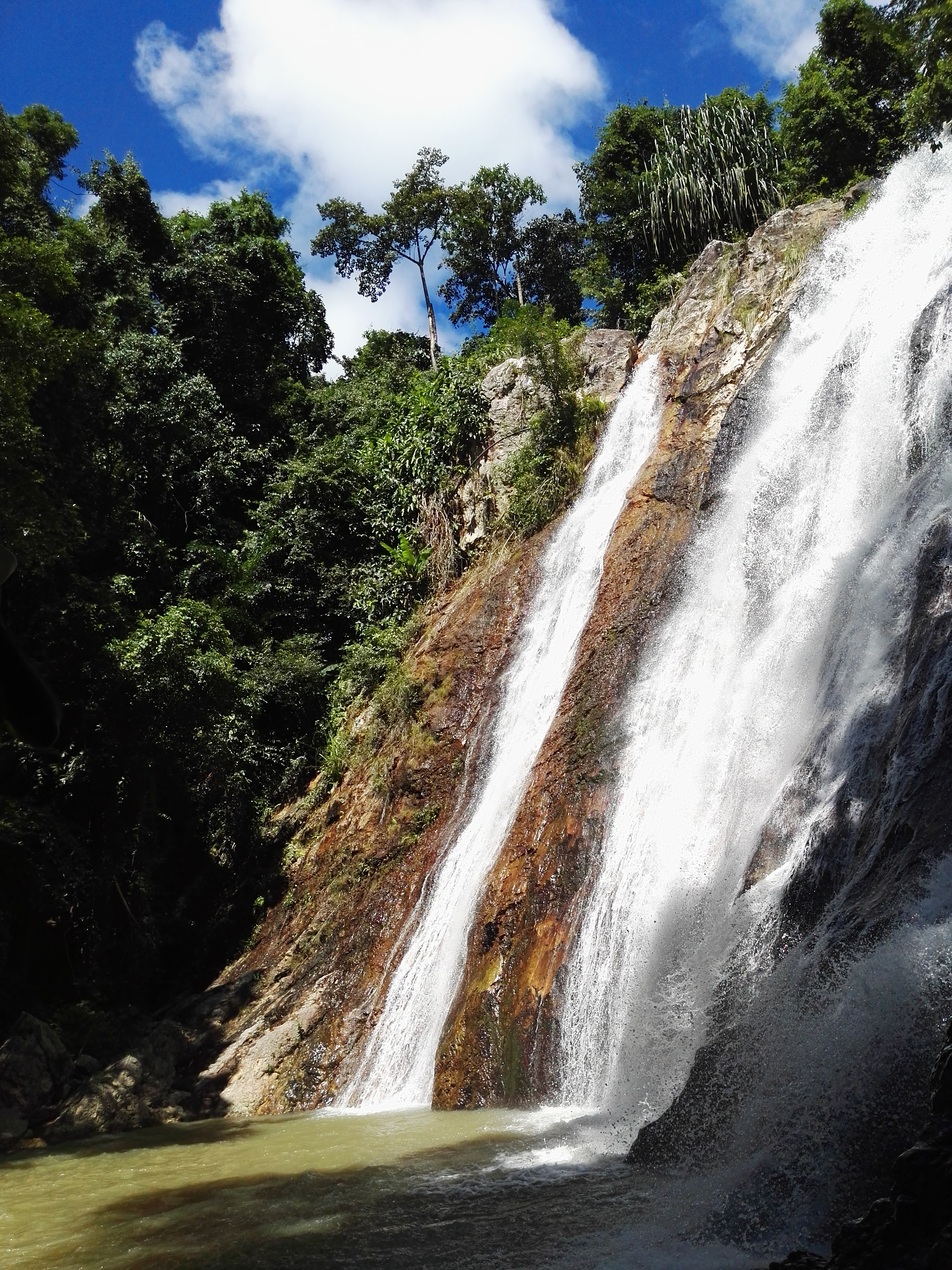 到达苏梅岛南部后,从主路出来一条小路,来看纳蒙瀑布。车停在后面的停车场就好。然后往里走,一段山路。走了很多山路终于到达。当然没有很大,但是比较自然。好多老外直接游泳。